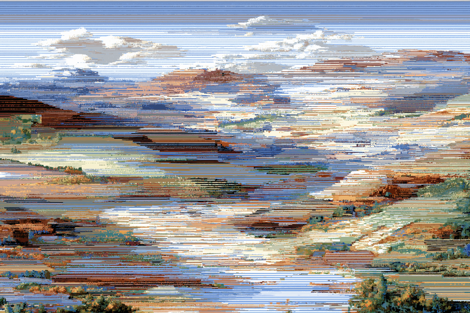 Glitched Mountain Scene