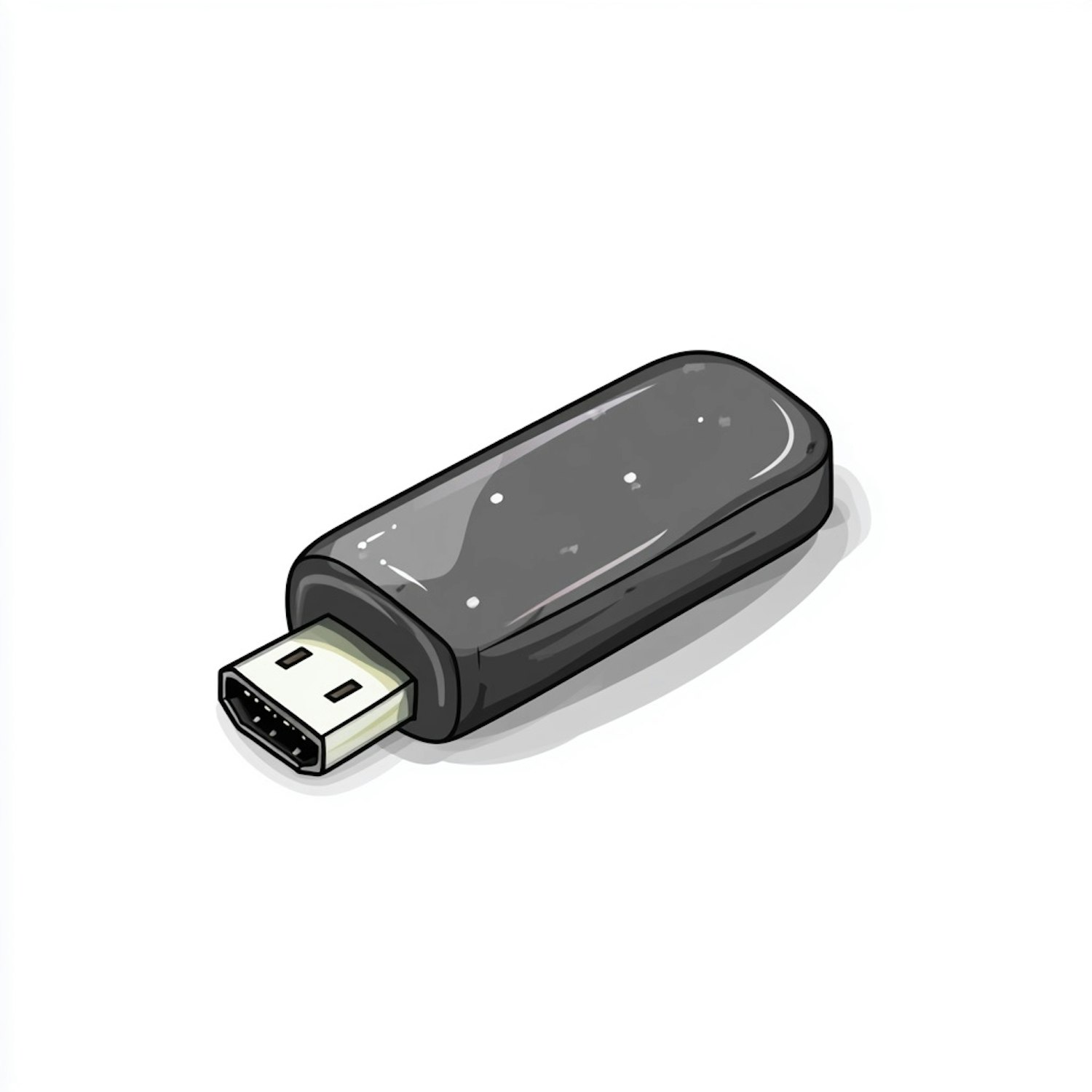 Minimalistic illustration of a sleek black USB flash drive with a glossy finish and metallic connector on a plain white background.