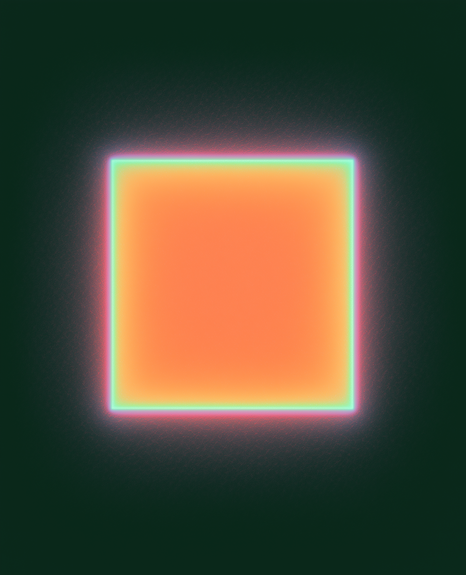 A glowing orange square with a neon green border radiates against a dark background, creating a vibrant and minimalistic aesthetic.