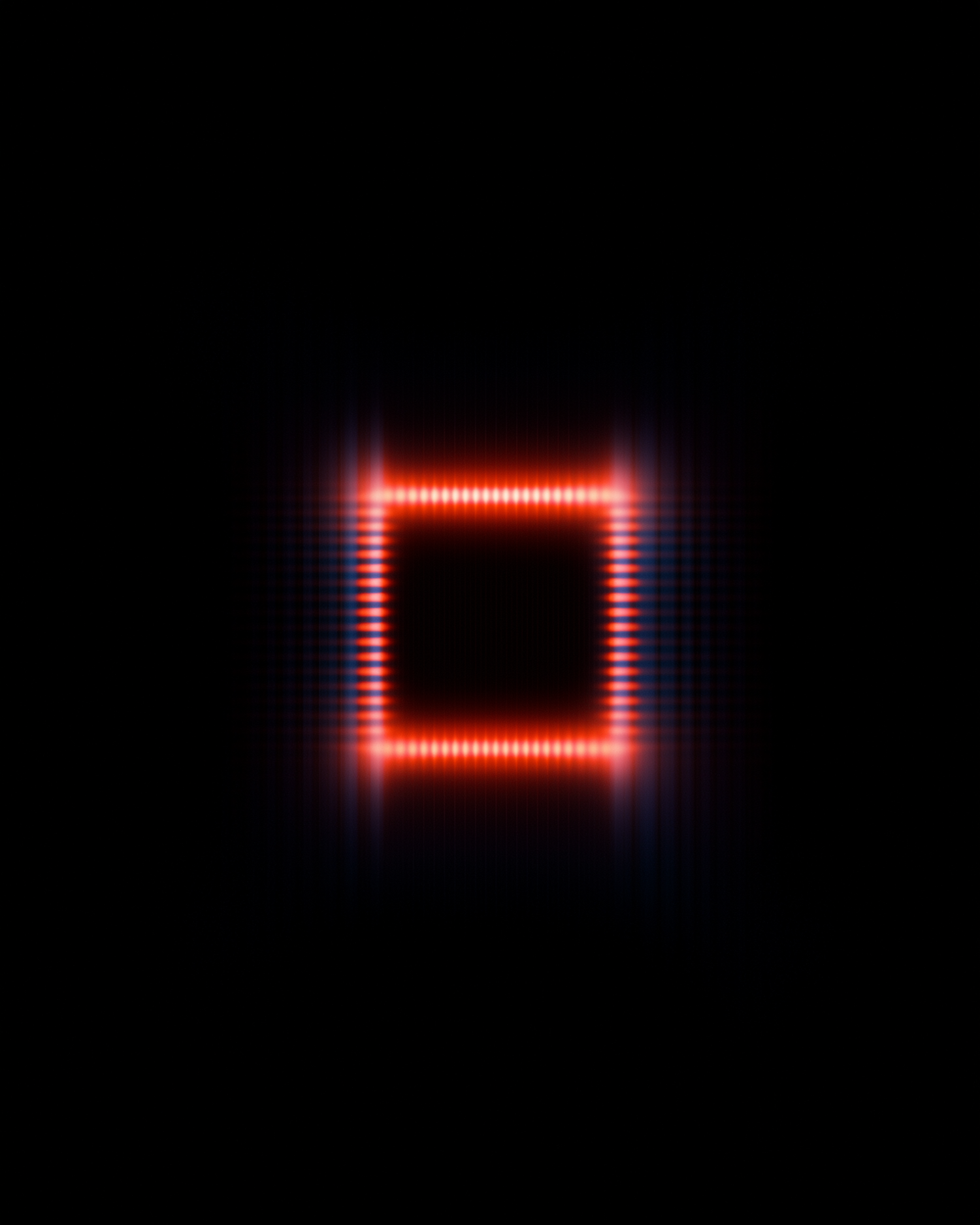 A glowing red rectangular frame with radiating light effects on a black background, creating a futuristic and minimalistic vibe.