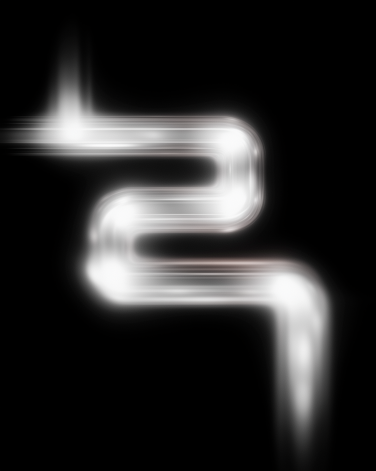 Abstract glowing serpentine light path design on black background, radiating dynamic energy and stark color contrast.