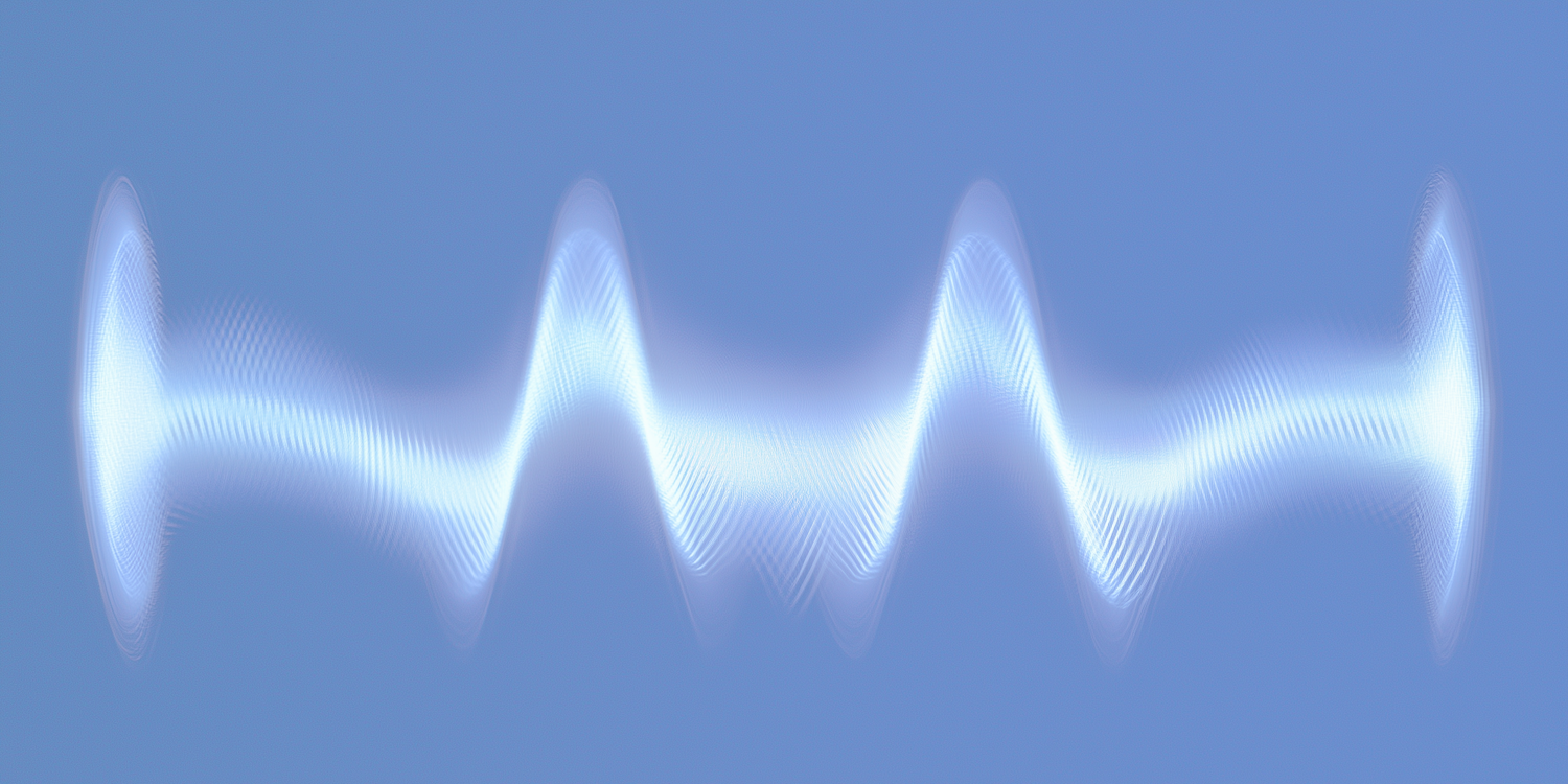 A glowing sine wave pattern in white light on a soft blue background, creating a minimalistic and ethereal digital design.