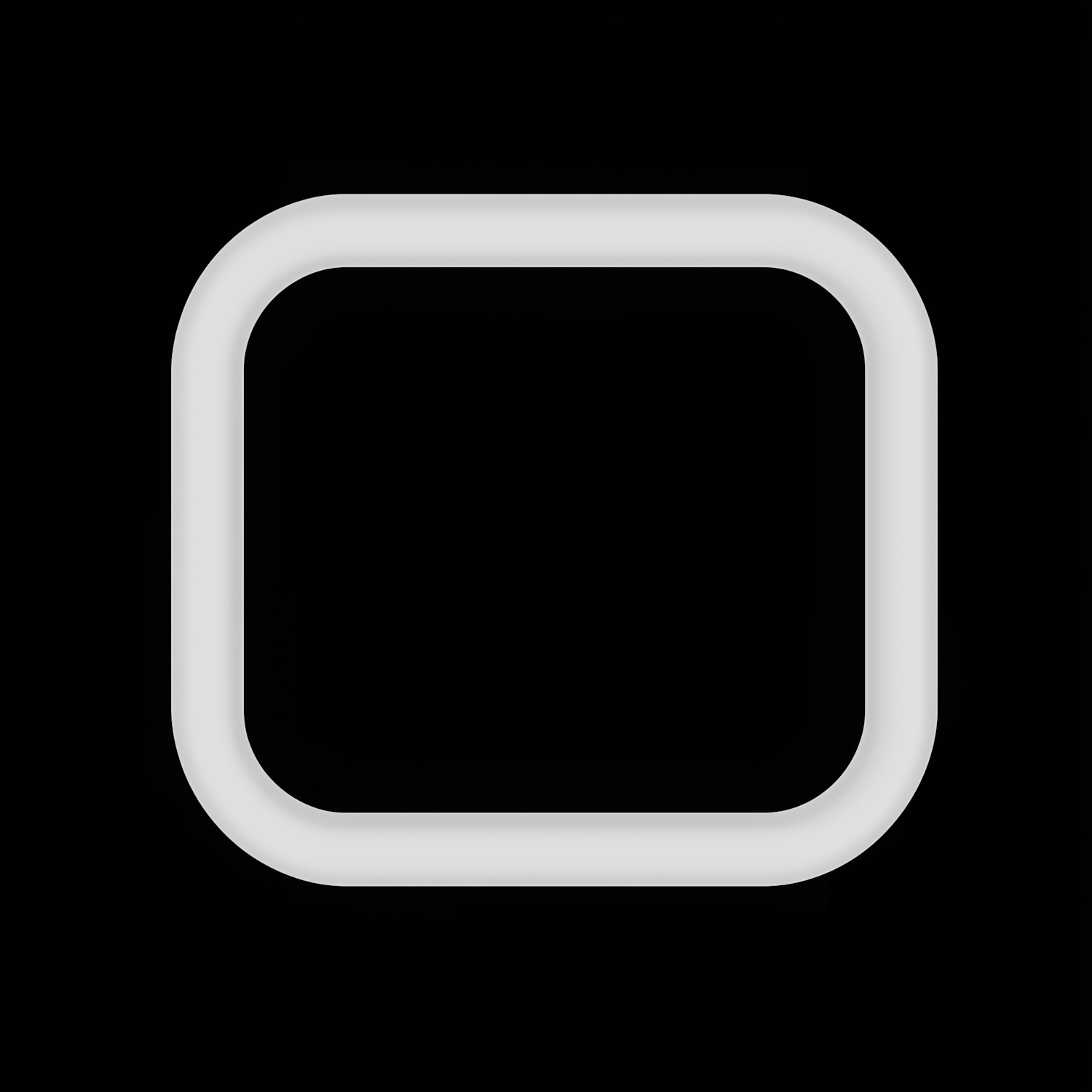 A glowing white rounded square outline on a black background, creating a sleek and modern abstract design with a minimalist aesthetic.