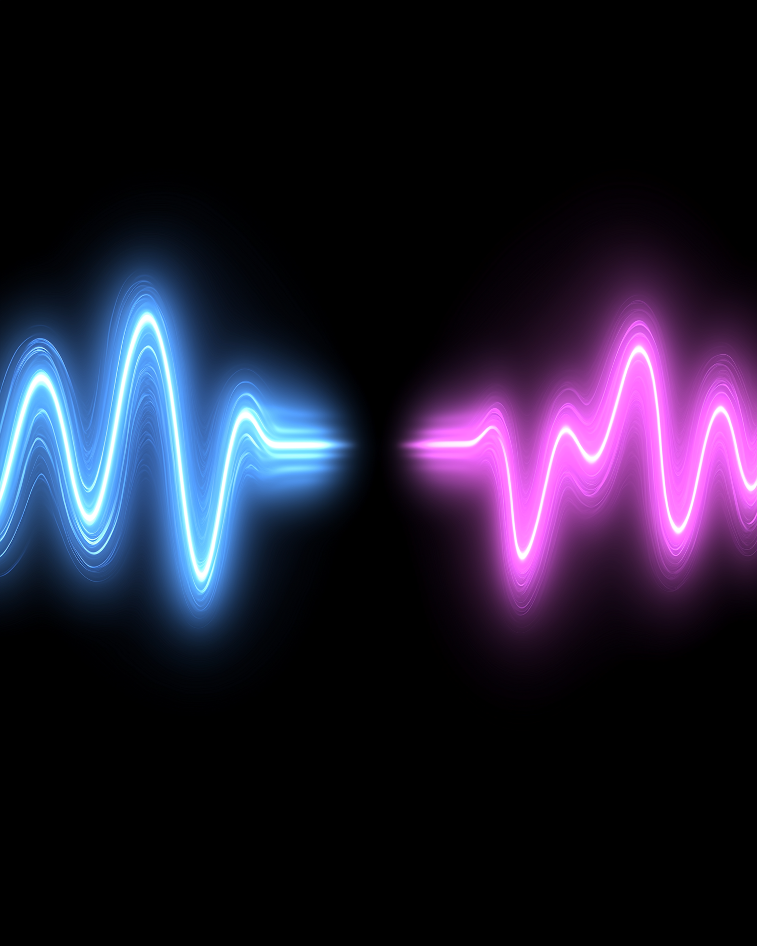 Glowing blue and pink waveforms on a black background, radiating energy and motion with vivid neon colors.