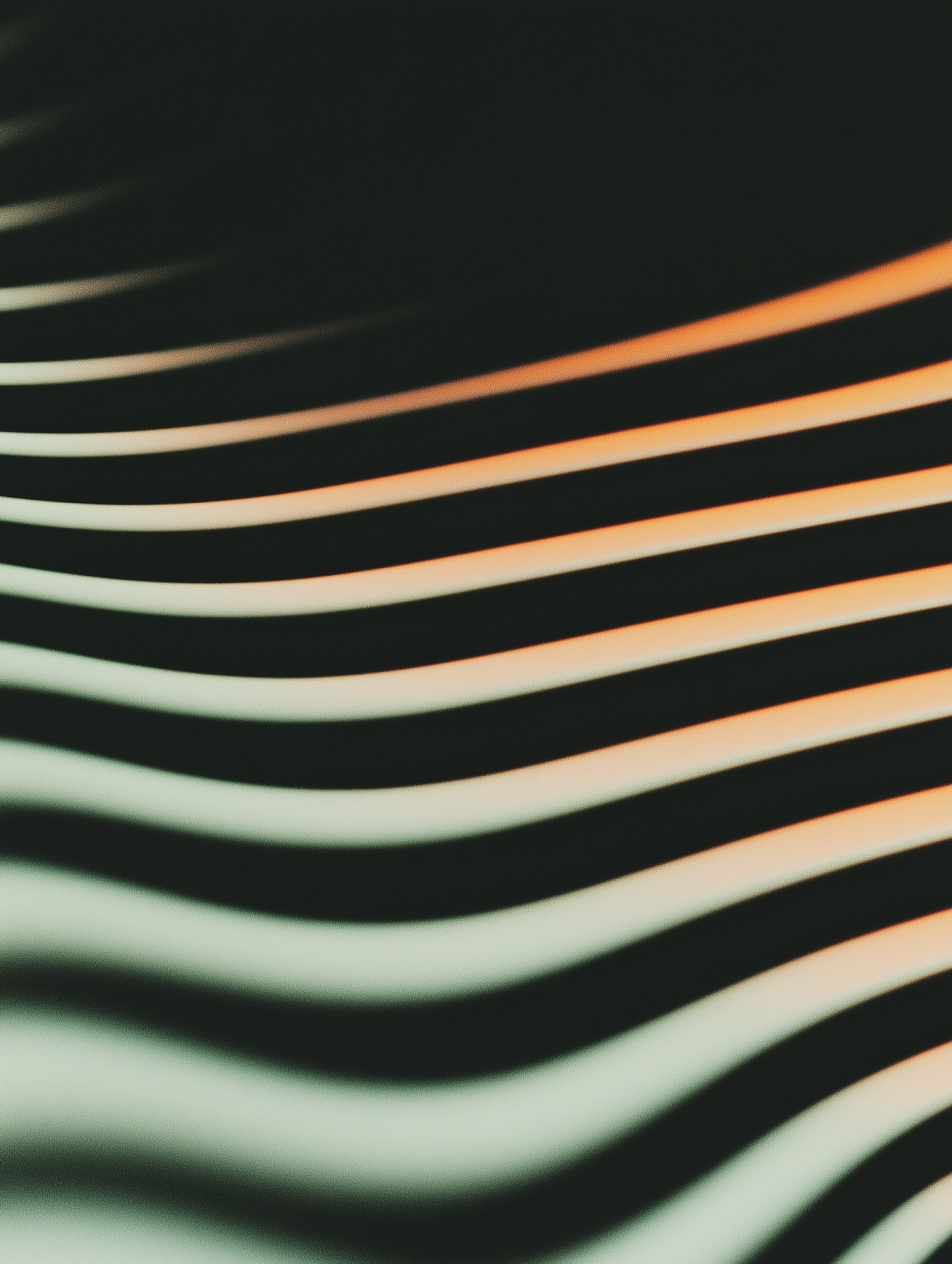 Abstract glowing wavy lines in green and orange hues on a dark background, creating a dynamic and modern visual effect.