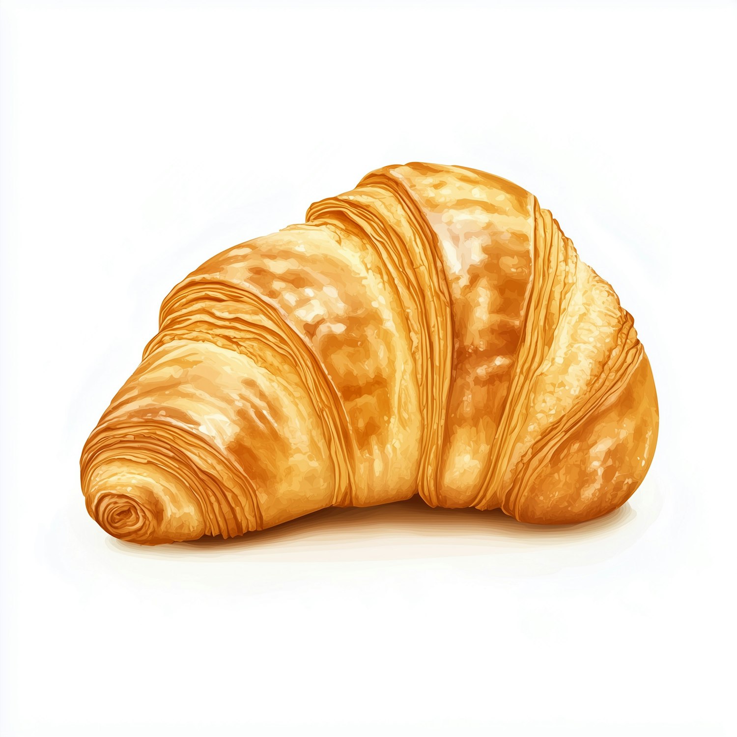 A detailed illustration of a golden, flaky croissant with a glossy finish, showcasing its buttery layers on a clean white background.