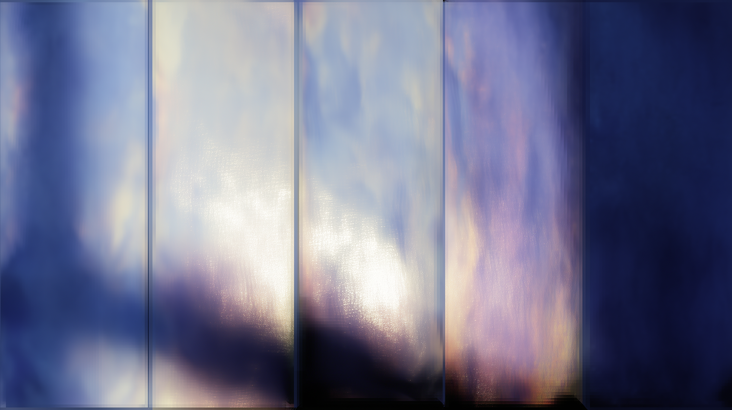 Abstract gradient artwork with blue, purple, and white tones, featuring reflective textures and vertical divisions for a modern aesthetic.