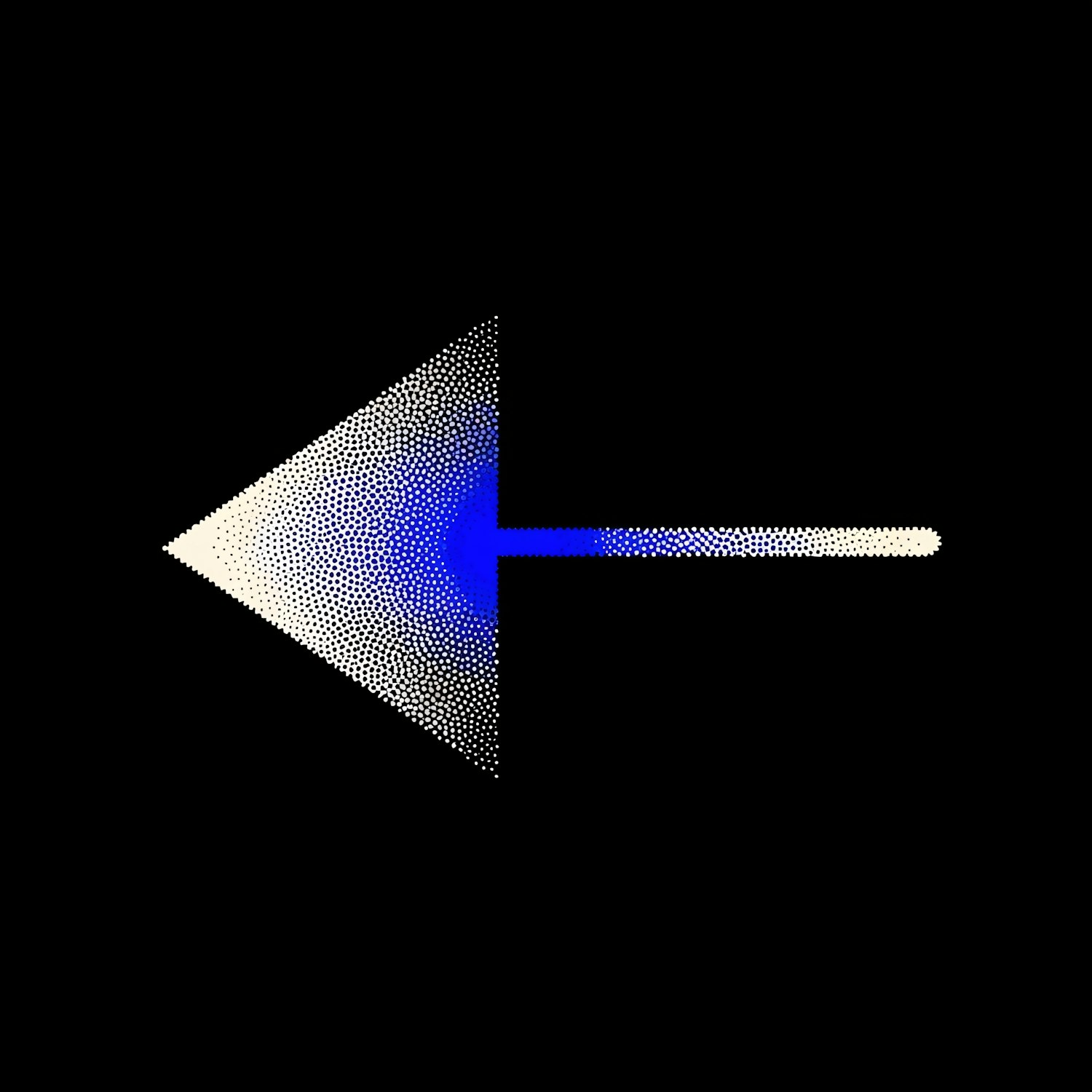 A vibrant dotted arrow design in blue and white on a black background, creating a striking visual effect.