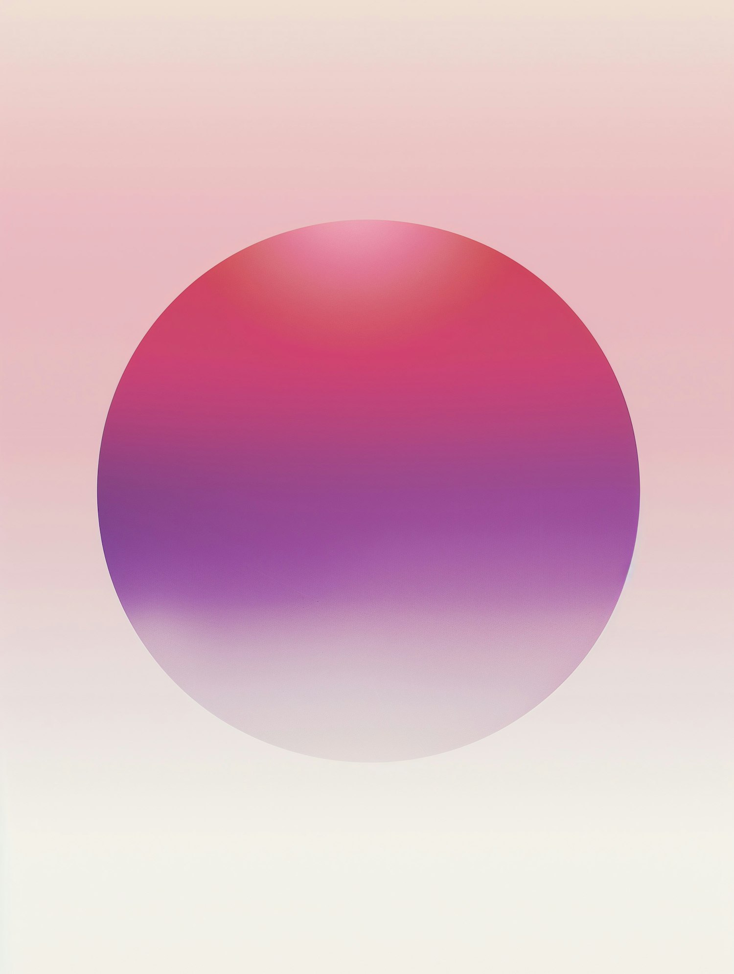 Minimalist gradient artwork with a magenta-to-purple circle on a pale pink background, creating a glowing and serene aesthetic.