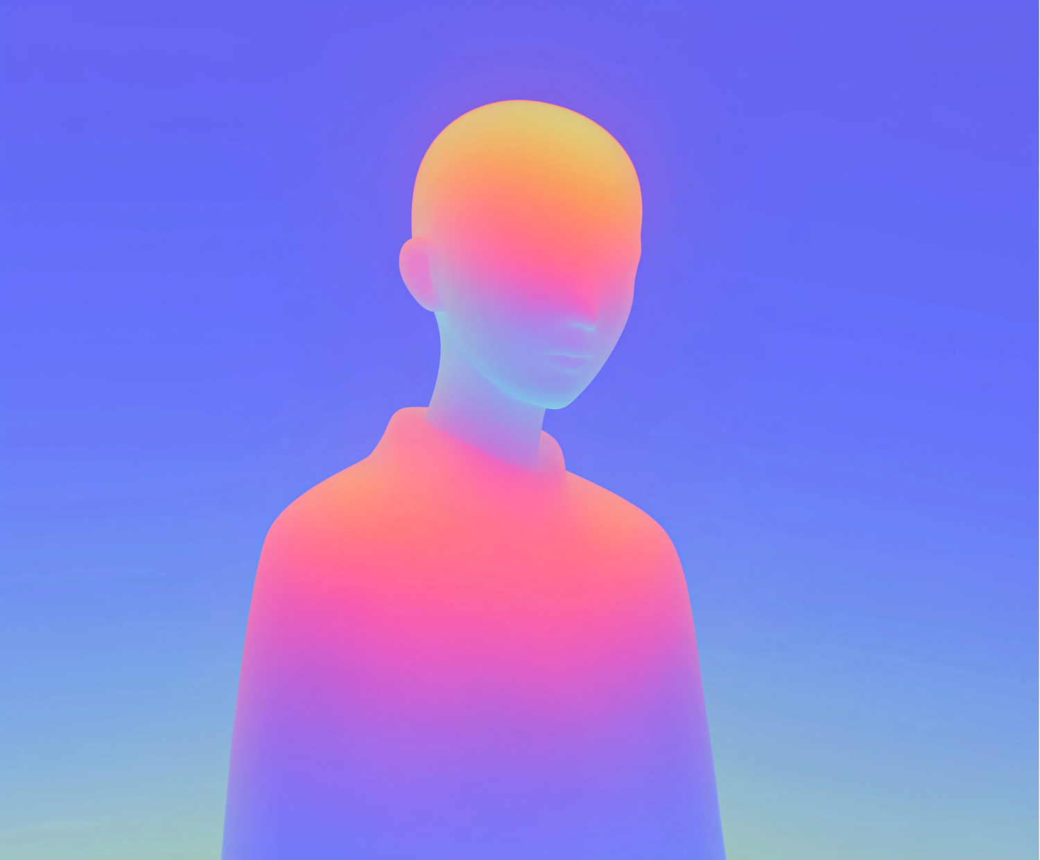 A vibrant digital artwork of a minimalistic human figure with gradient colors, set against a matching gradient background.