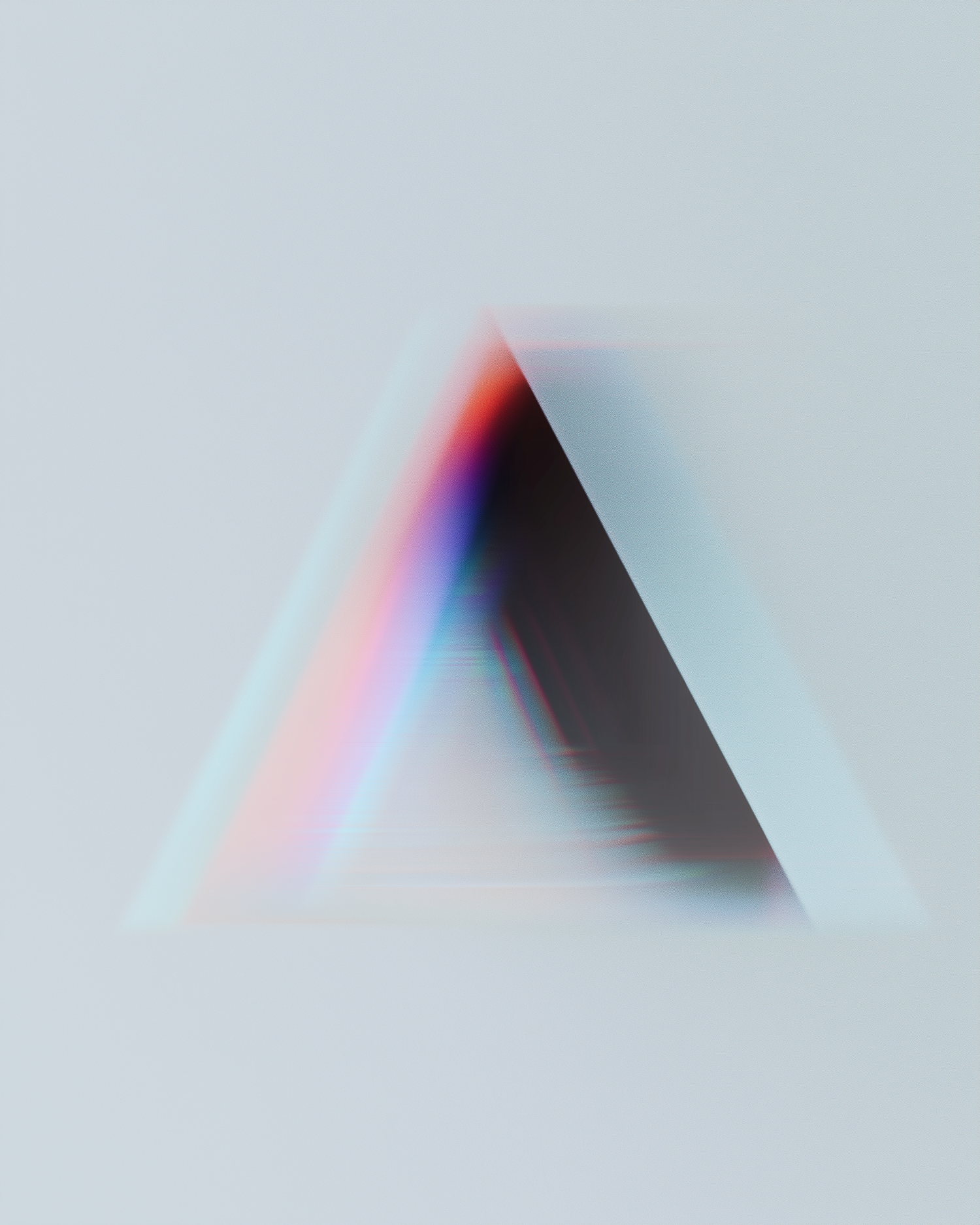 Abstract image of a colorful, blurred triangle on a light gray background, creating a dreamy, prismatic effect.