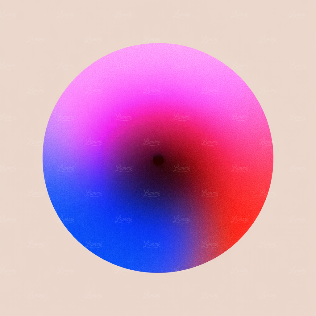 Abstract circular gradient art with pink, red, blue, and purple hues on a beige background. Minimalist and modern design.