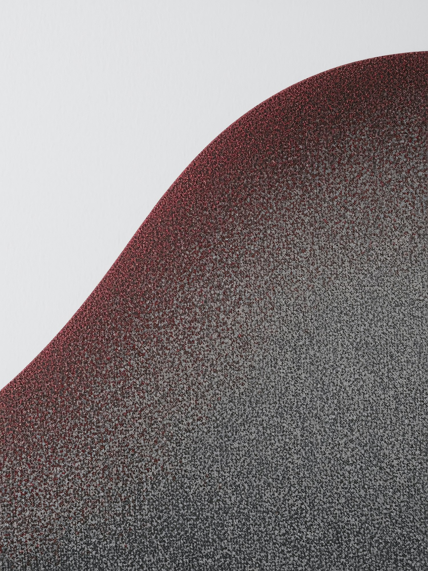 Abstract gradient texture transitioning from red to gray with a speckled effect, set against a white background for contrast.
