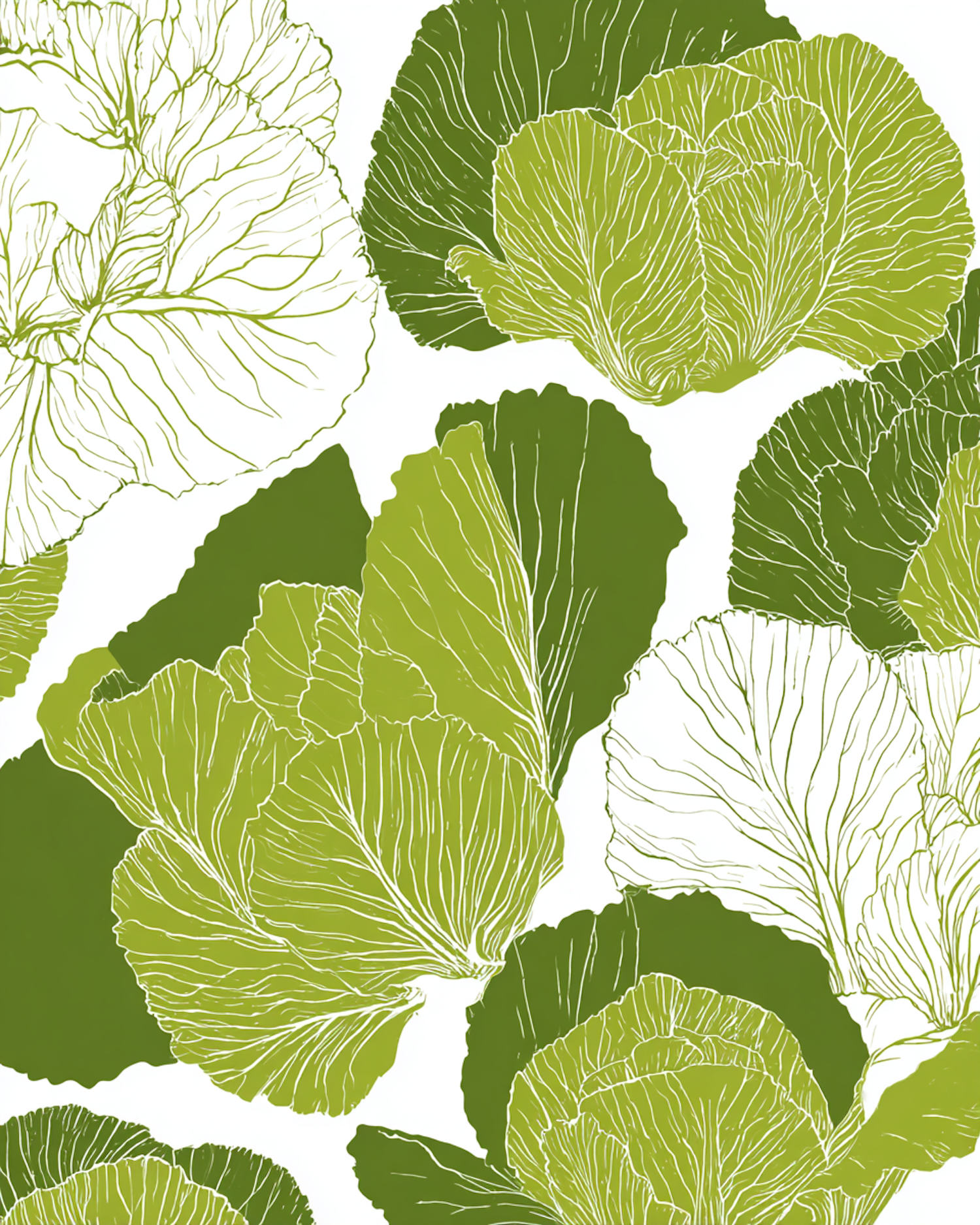 A vibrant illustration of green leaves with intricate vein patterns on a white background, perfect for decorative or design purposes.