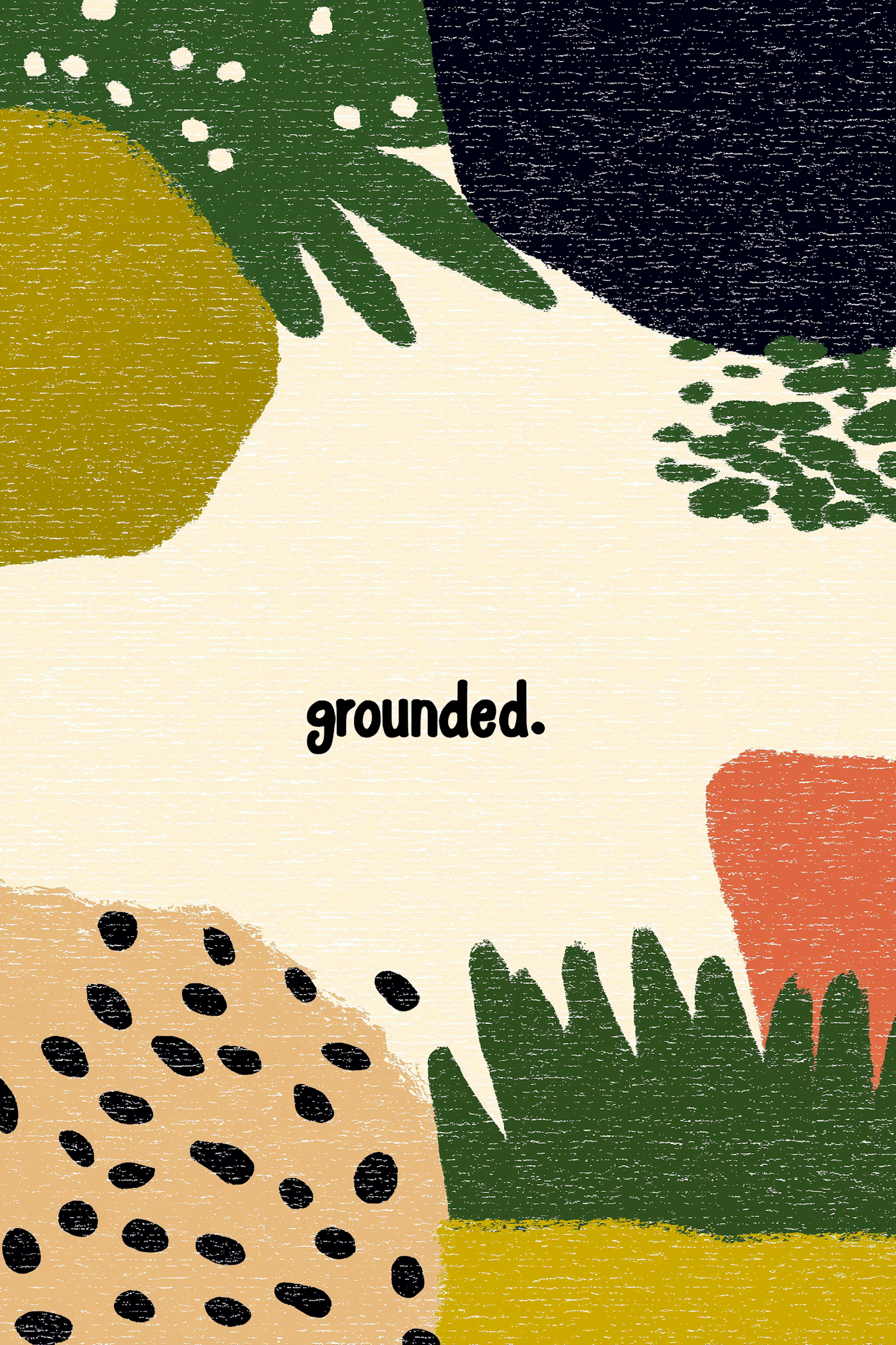Abstract illustration with earthy tones and the word 'grounded.' in bold text, evoking a sense of stability and connection to nature.