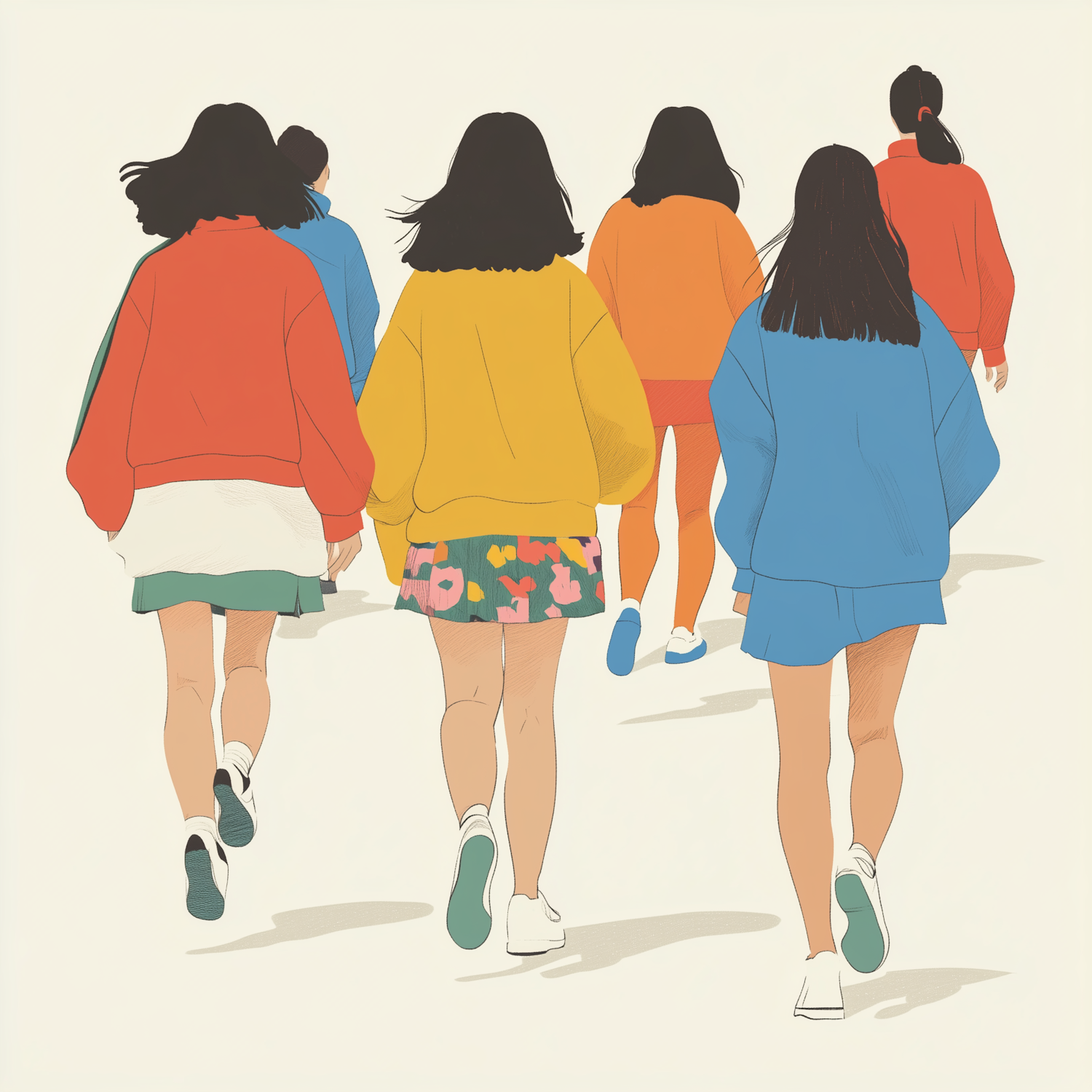 Group Walking in Colorful Clothing