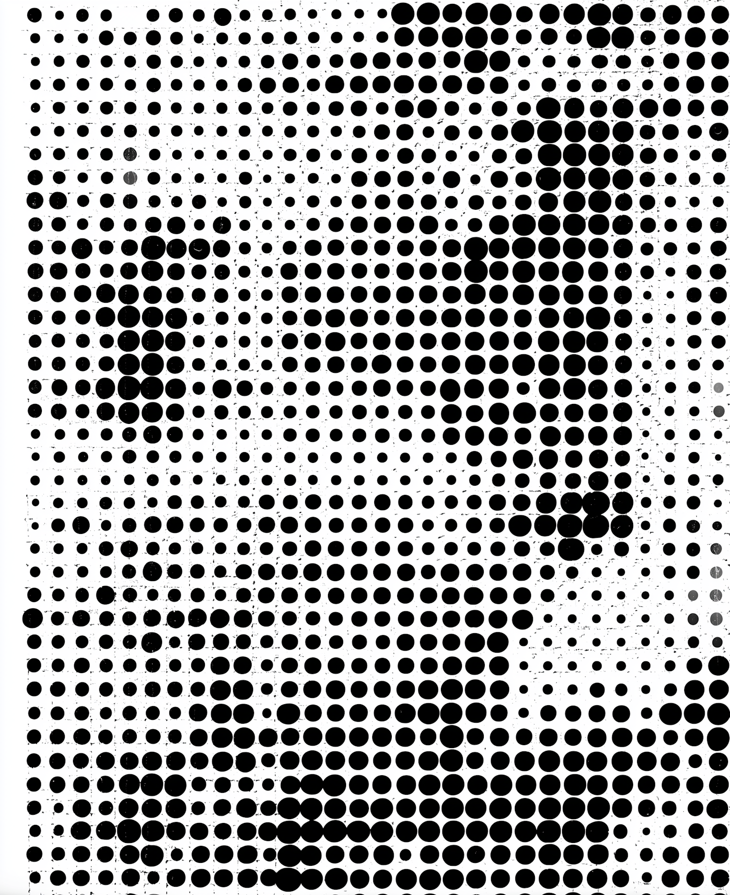 Halftone art of a human face in profile, created with black dots on a white background. The gradient effect adds depth and a vintage feel.