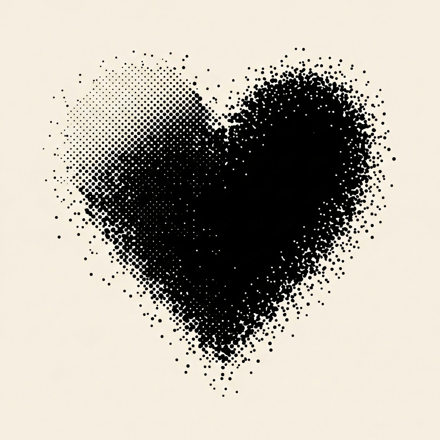 A halftone heart design with a gradient effect on a beige background, blending artistic minimalism with a modern touch.