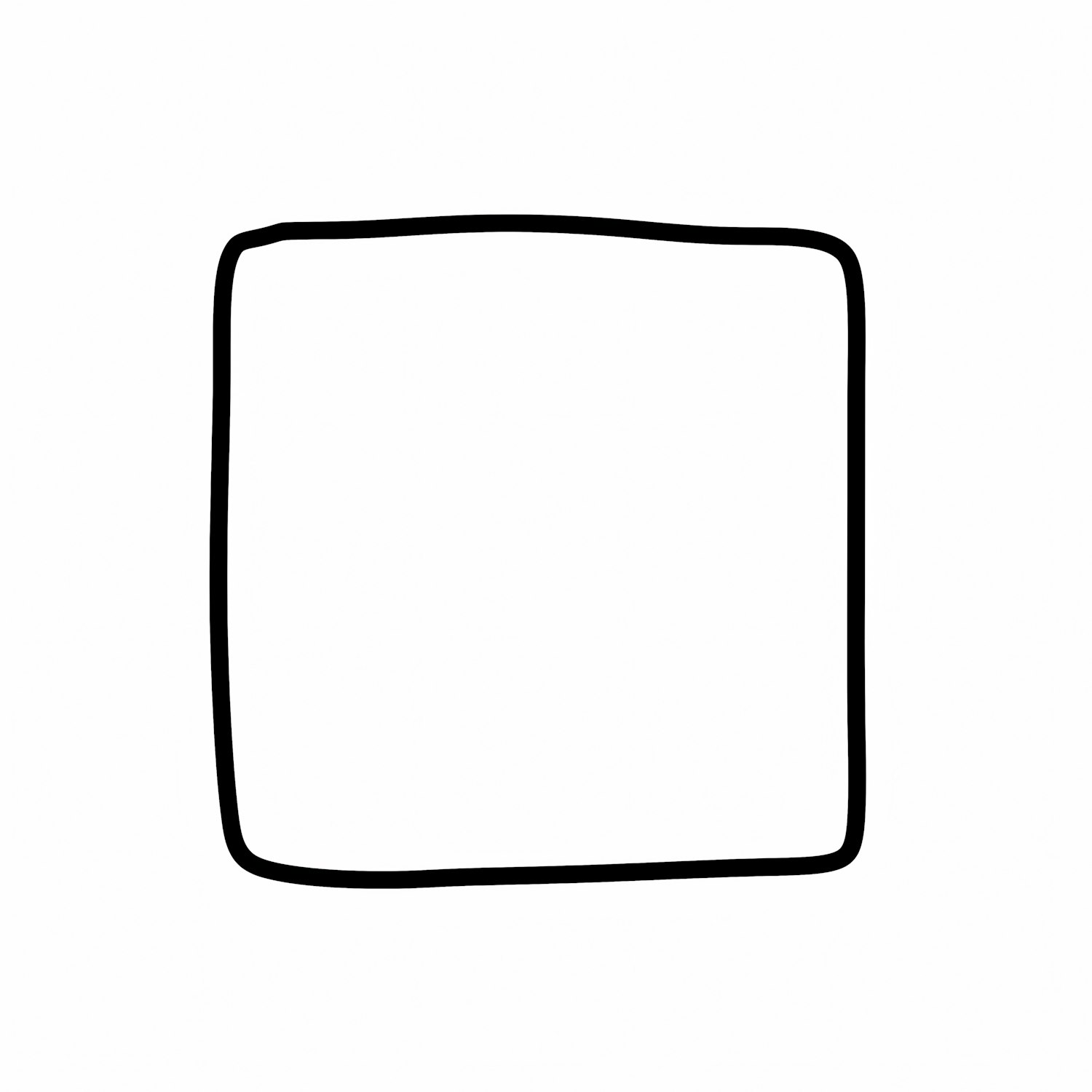 A hand-drawn black square outline on a white background, featuring slightly uneven lines for a casual, artistic look.
