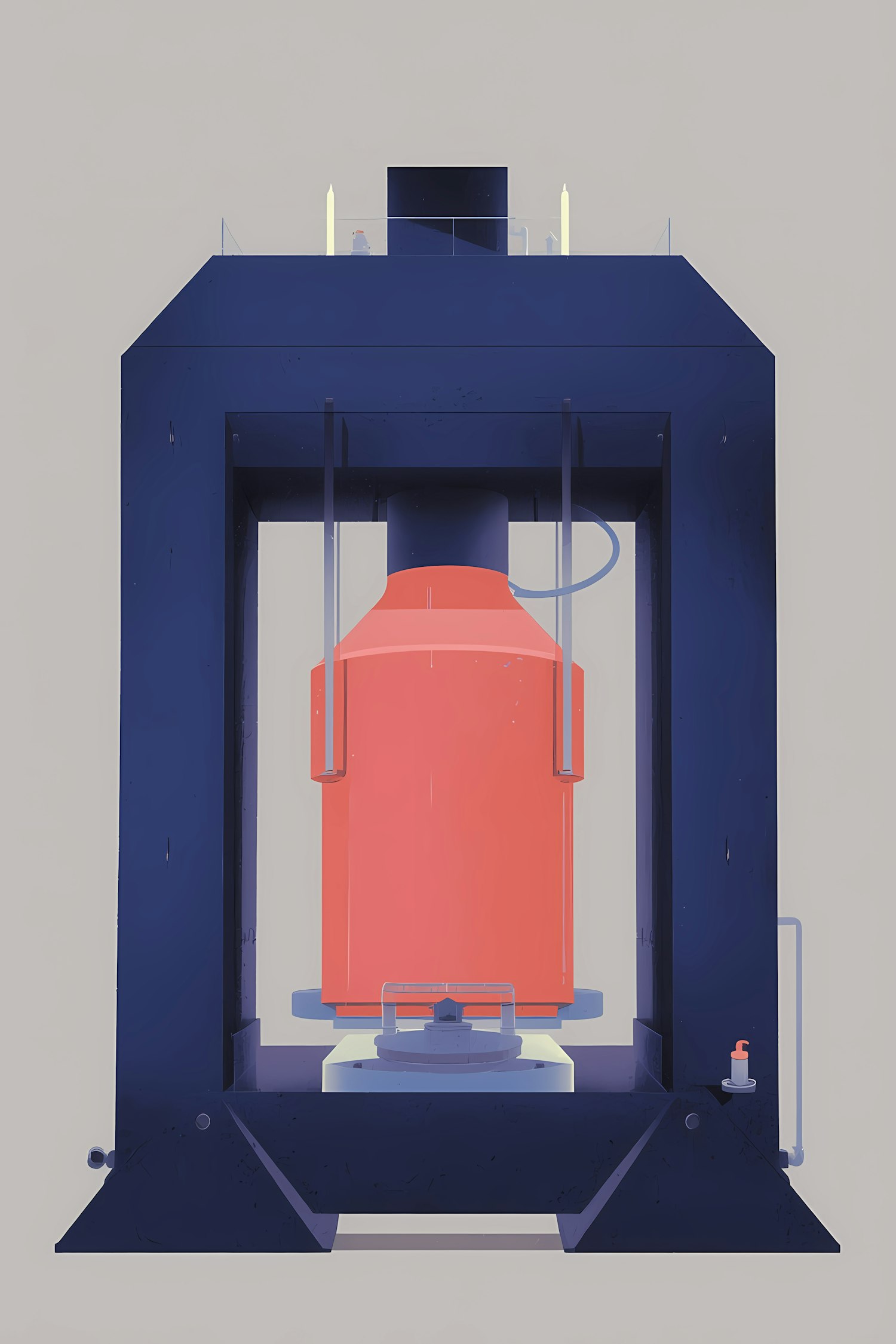 Stylized illustration of a large industrial press with a red central component, set against a neutral background.