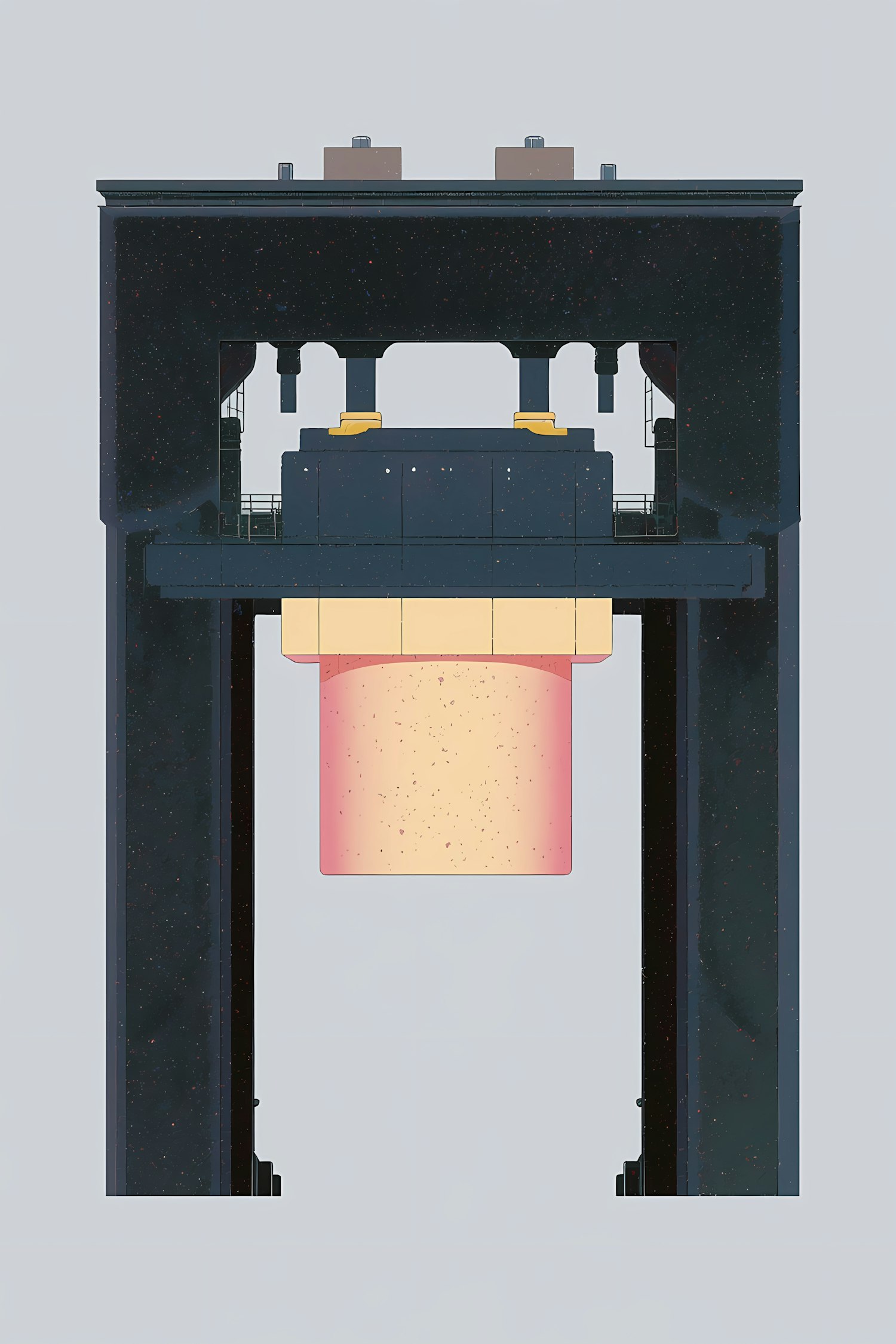 Stylized illustration of industrial machinery with a glowing cylindrical component, set against a plain gray background.