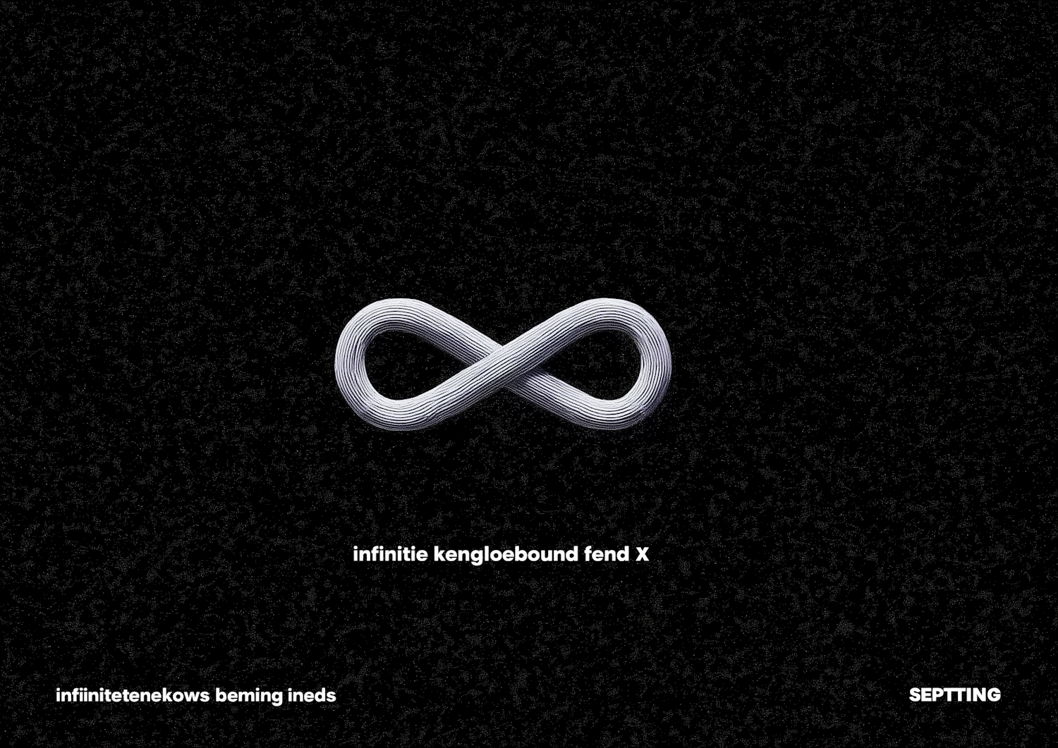 A textured infinity symbol on a black background with artistic text elements, creating a modern and abstract digital design.