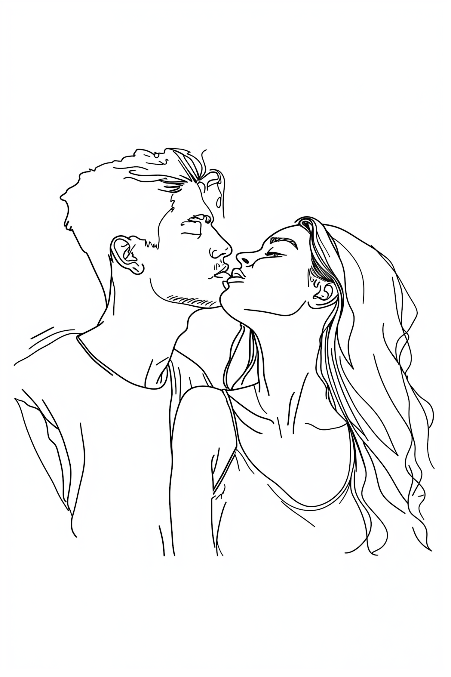 Minimalist line art of a couple about to kiss, capturing intimacy and emotion with simple, elegant lines.
