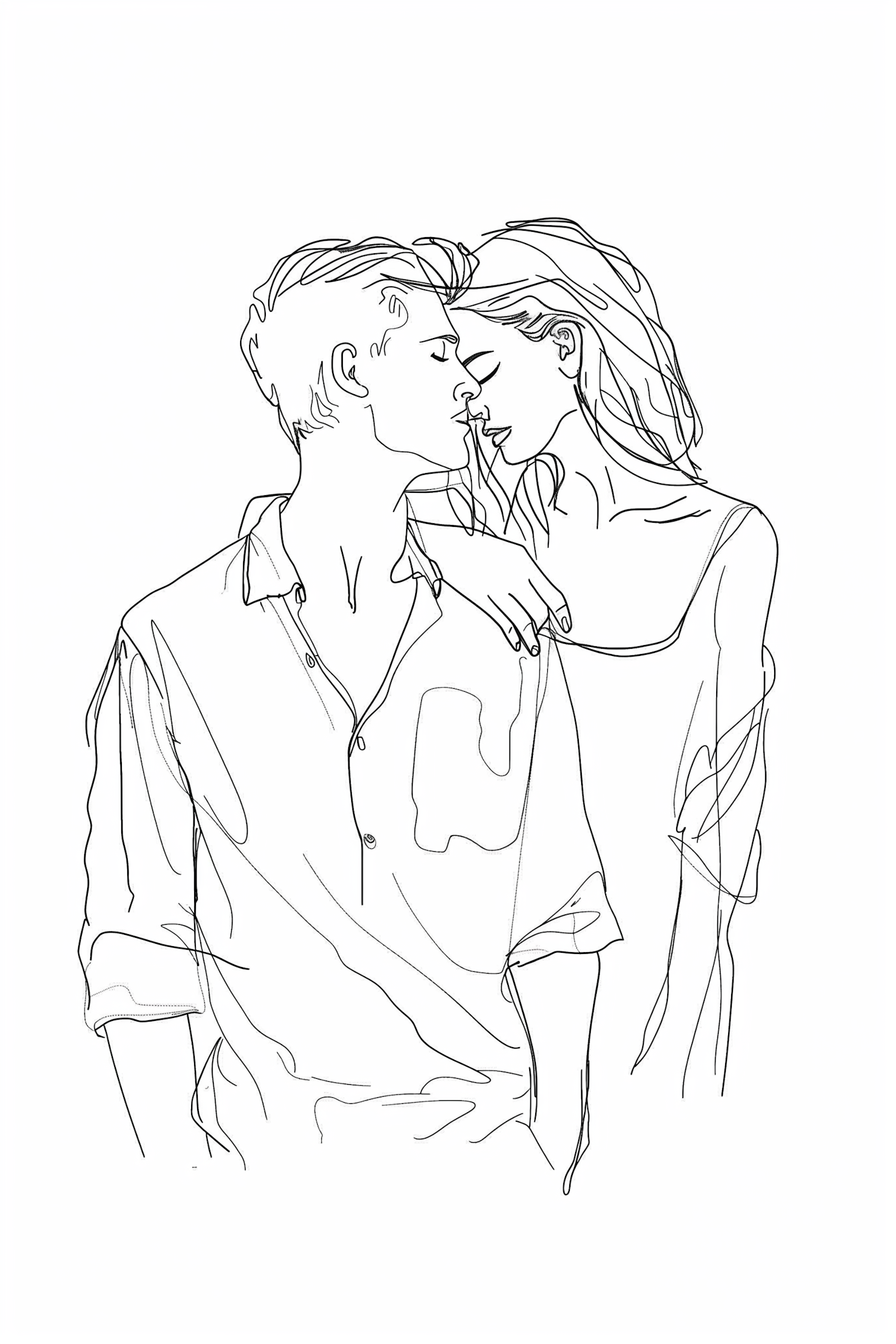 Minimalist line drawing of a couple in an intimate pose, capturing a tender moment with simple, elegant lines.