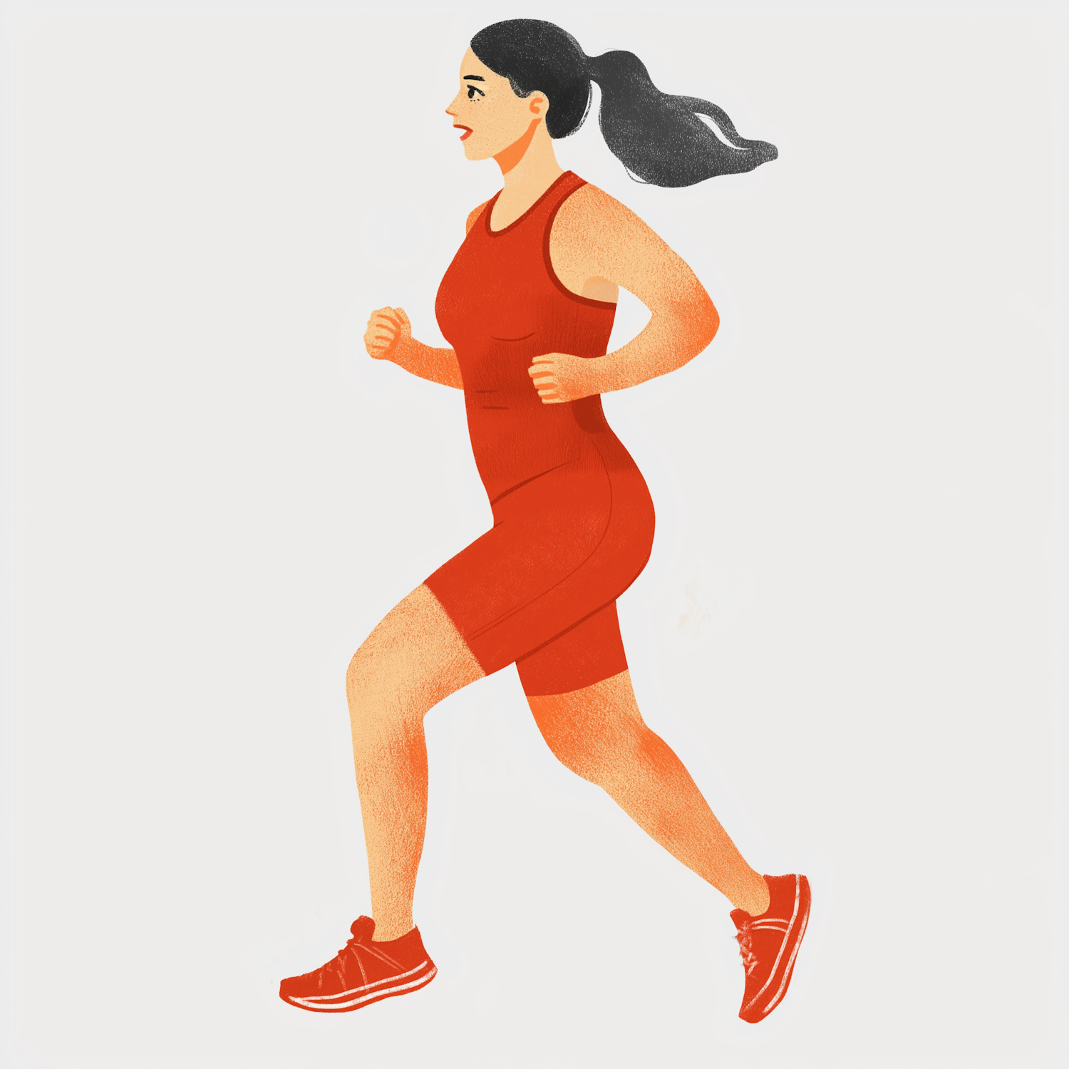 Illustration of a woman running in a red athletic outfit, showcasing dynamic movement and energy.