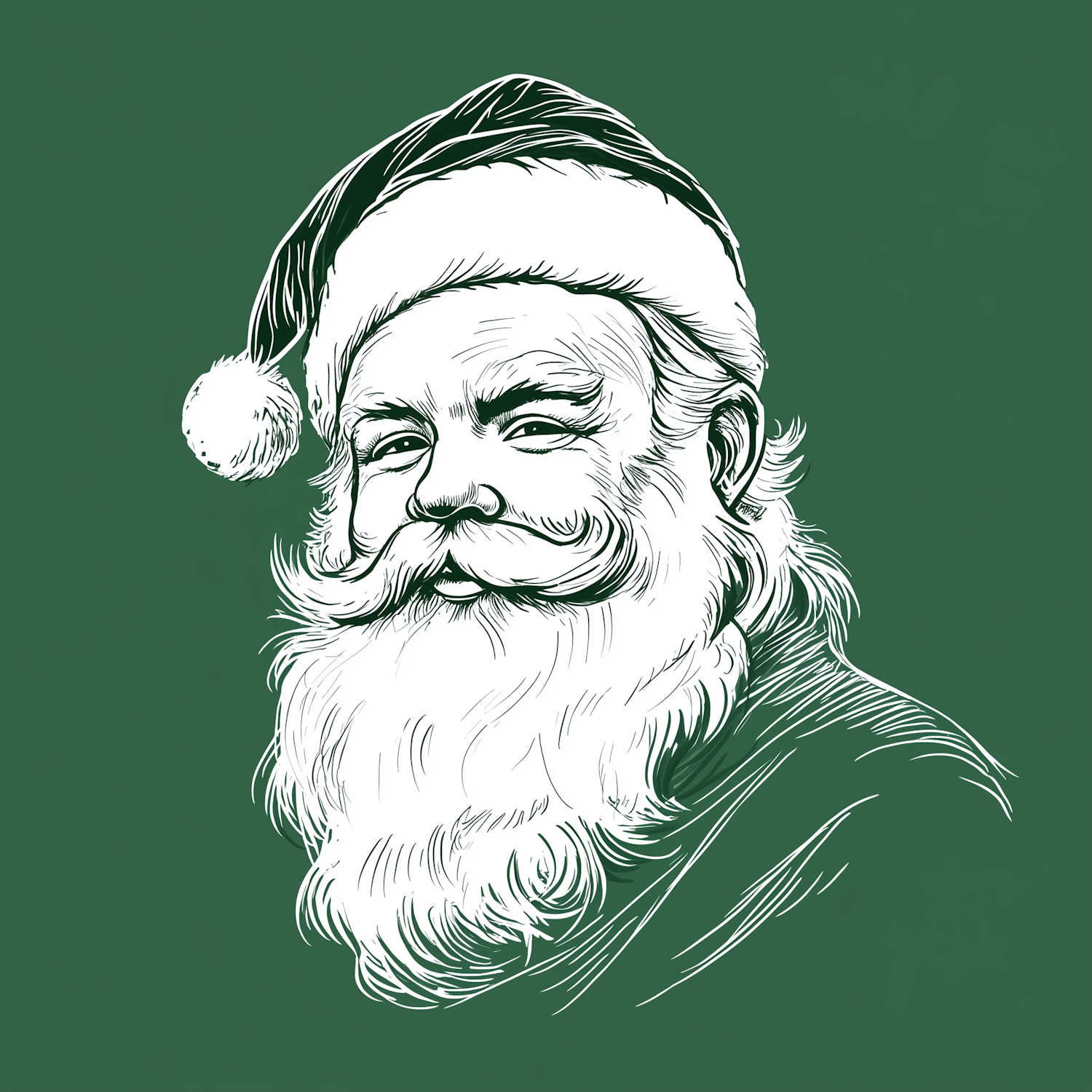 Classic Santa Claus illustration with a jolly expression, white beard, and red hat on a green background. Perfect for holiday themes.