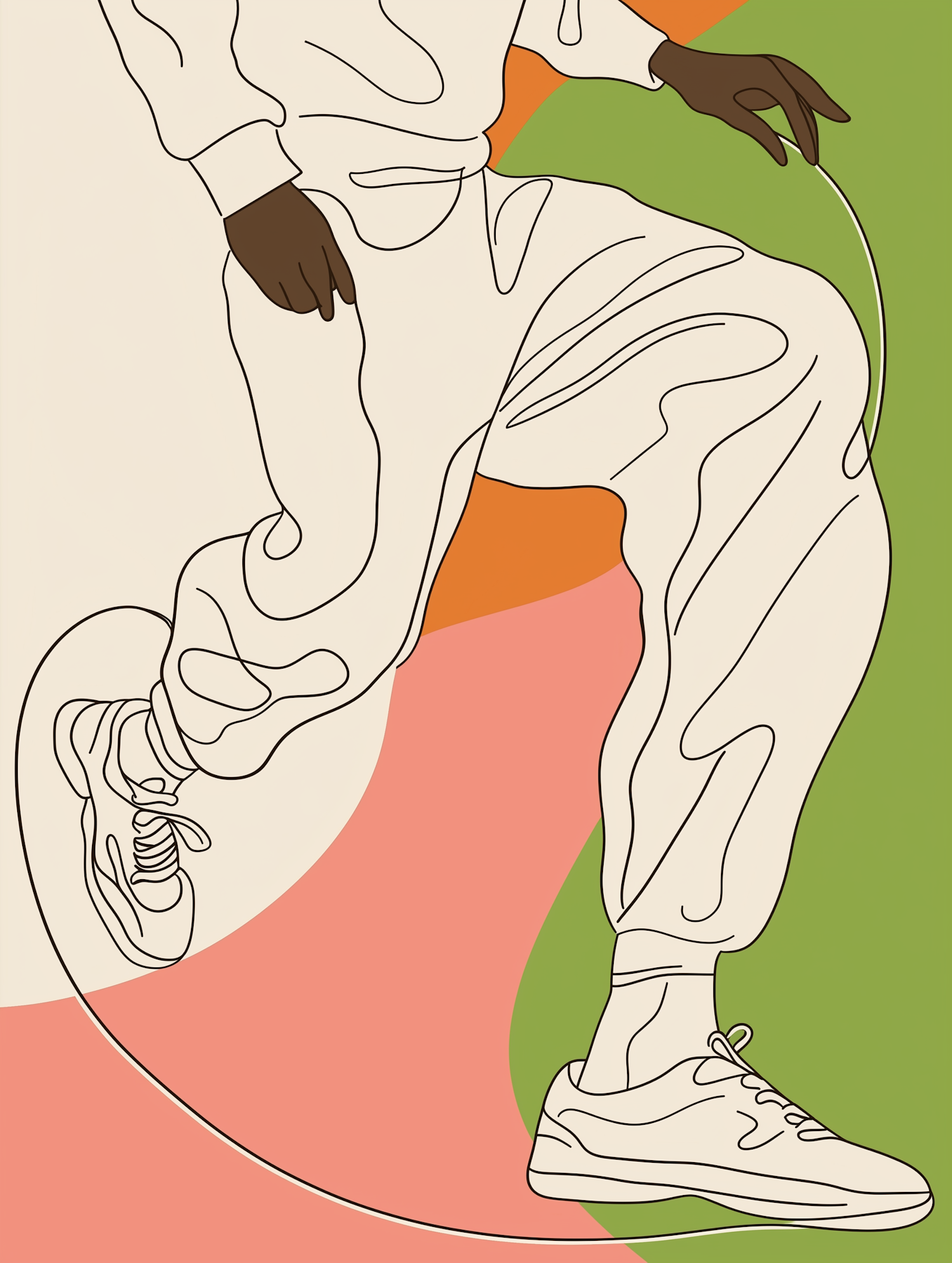 Minimalist line art of a person jumping rope, set against a colorful abstract background. Energetic and dynamic illustration.