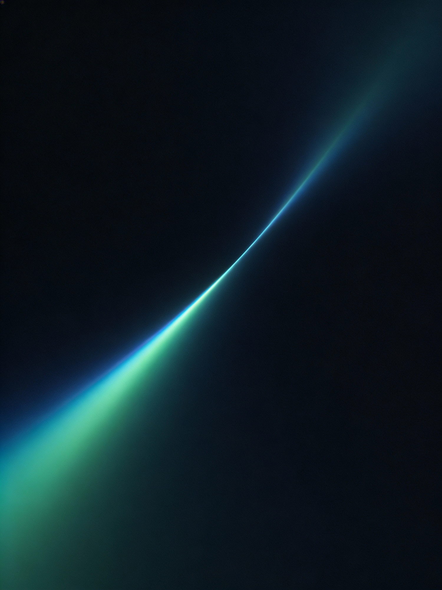 A vibrant streak of green and blue light arcs across a dark background, creating a sleek and dynamic visual effect.
