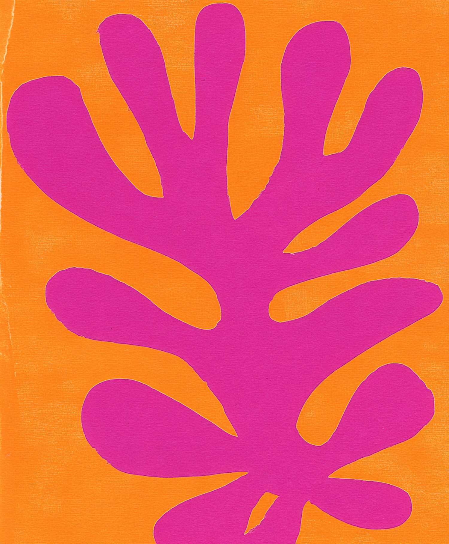 Bright abstract art with a magenta organic shape on an orange background, creating a bold and vibrant visual contrast.