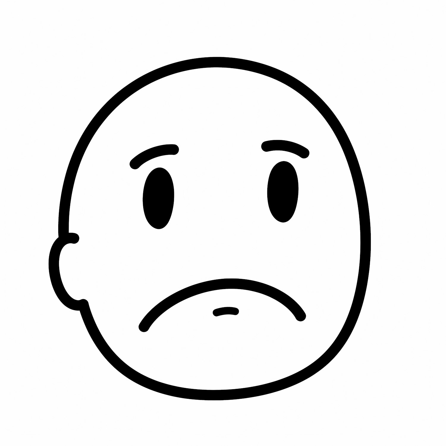 Minimalistic black-and-white sad face illustration with clean lines and expressive features on a plain white background.