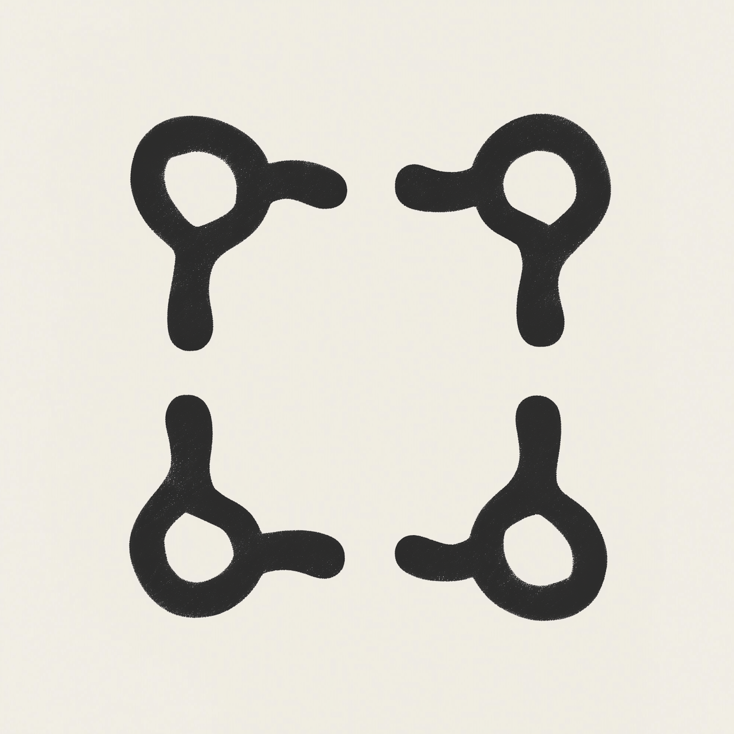 Minimalist abstract design with four black loop-like shapes symmetrically arranged on a light beige background.