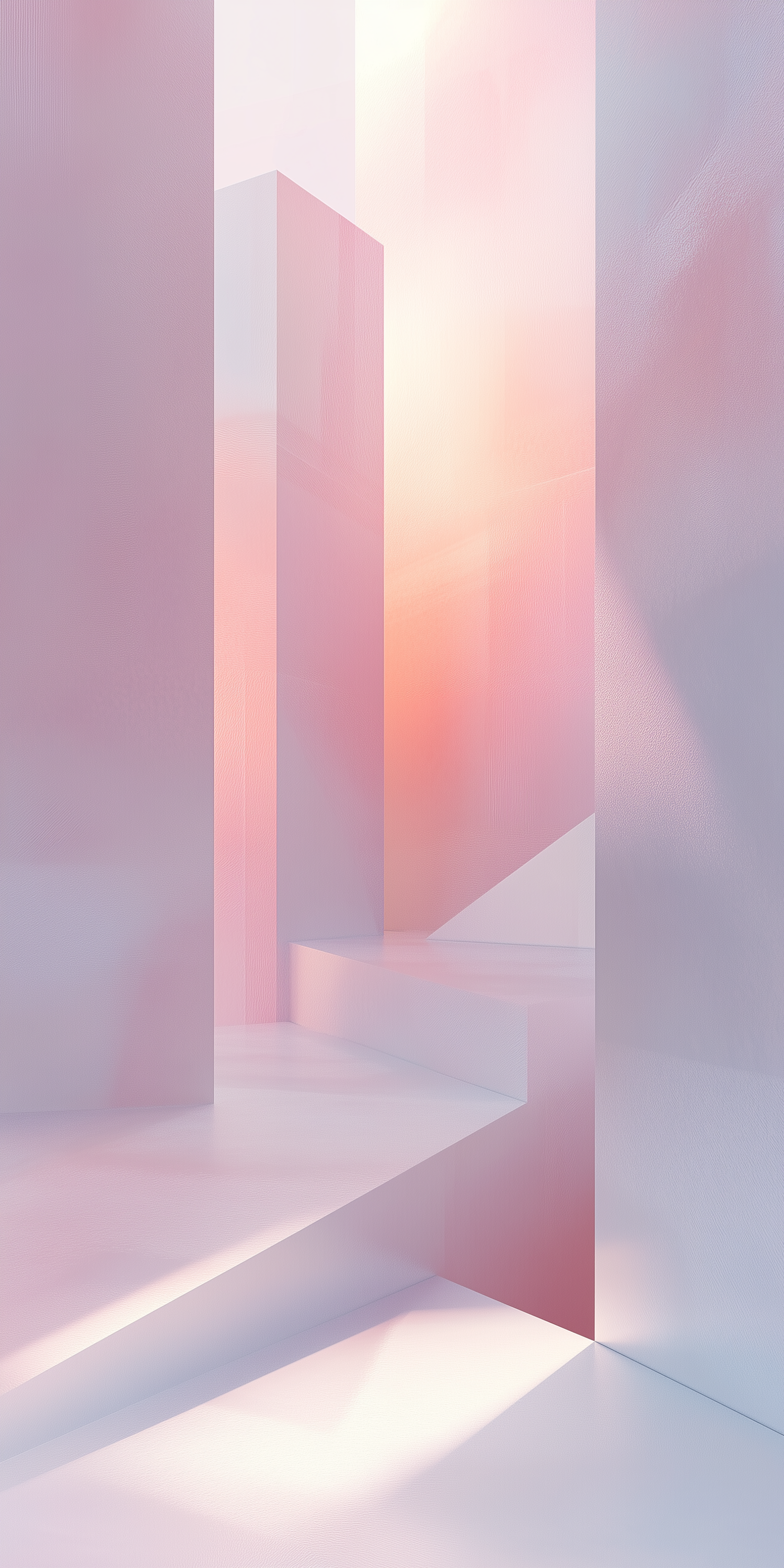 A dreamy pastel-toned abstract space with geometric shapes, soft lighting, and a serene, modern architectural vibe.