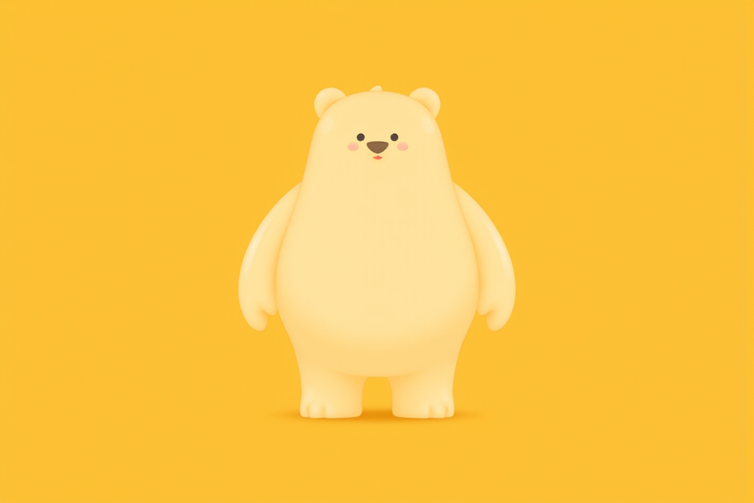Adorable minimalist illustration of a yellow bear with rosy cheeks on a matching yellow background. Perfect for cute and cheerful designs.