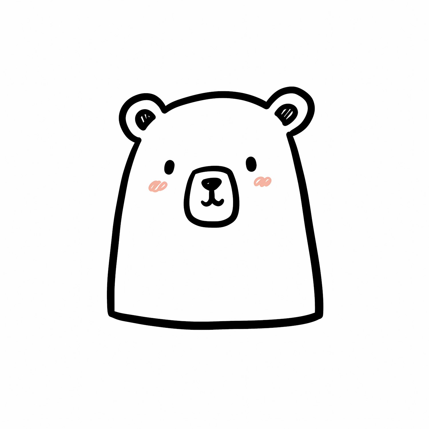 Minimalist cartoon bear illustration with a friendly expression, rounded features, and soft pink blush on its cheeks.