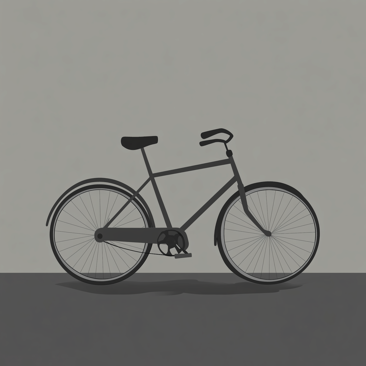 Minimalist illustration of a bicycle with a dark frame against a muted gray background, highlighting simplicity and elegance.