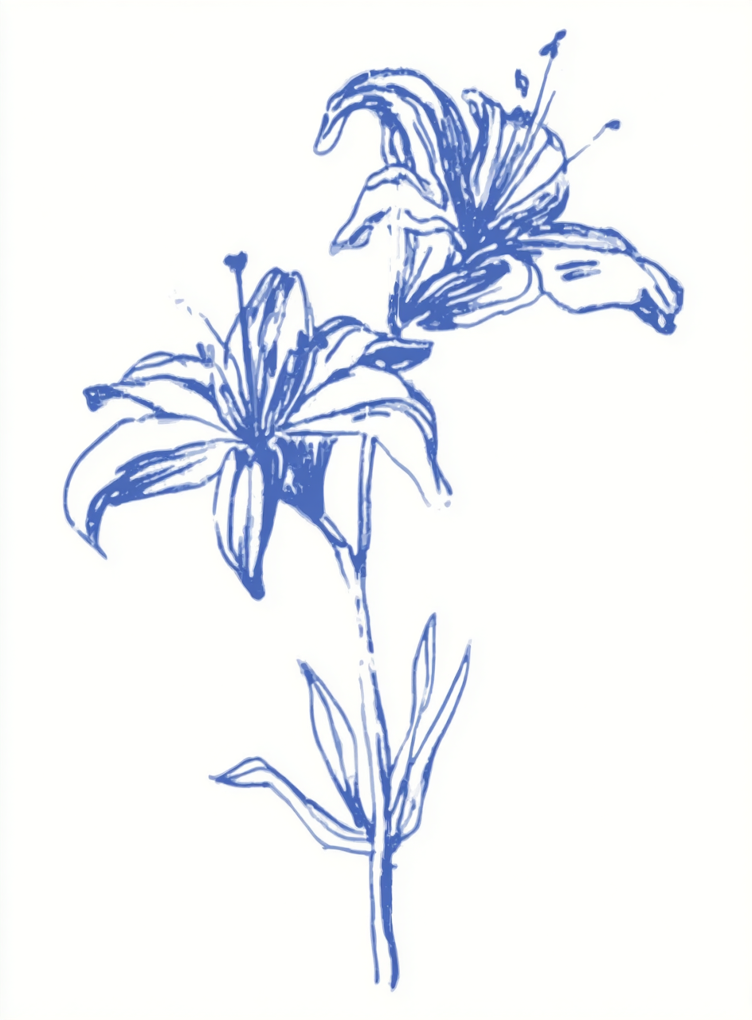 A simple and elegant blue line drawing of two lilies on a white background, showcasing their natural beauty in a minimalist style.
