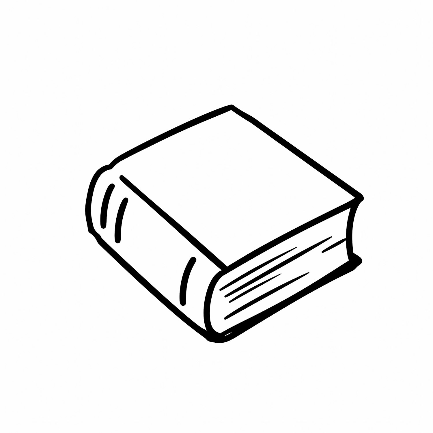 Minimalistic black-and-white line drawing of a closed book with a visible spine and pages, set against a plain white background.