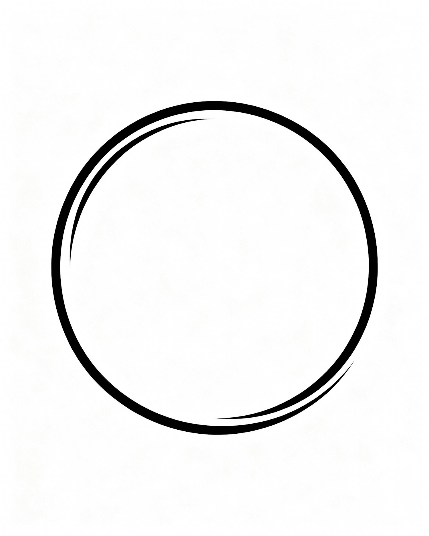 Minimalist black circular brushstroke on white background, symbolizing simplicity and balance.
