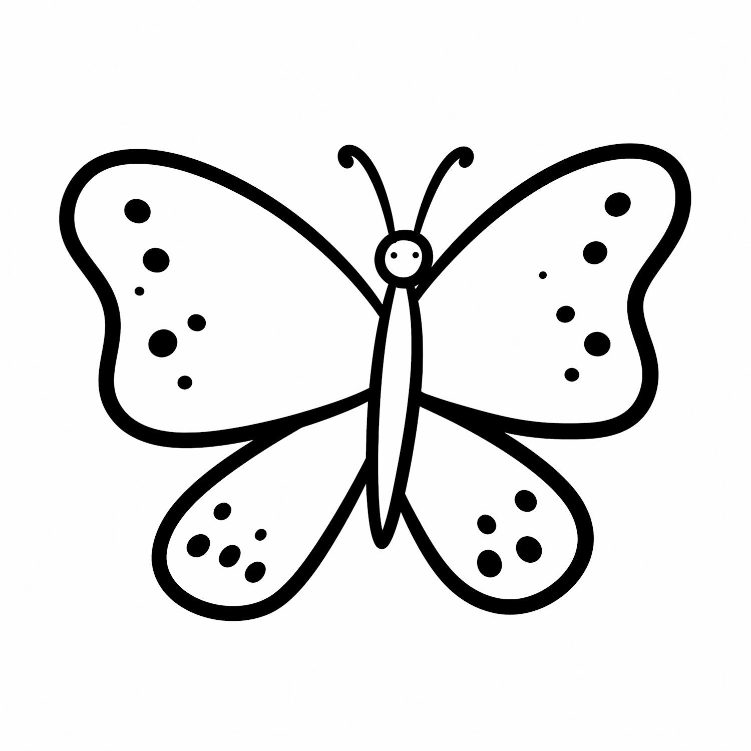A clean black-and-white line drawing of a butterfly with dotted wings, perfect for coloring or simple decorative designs.