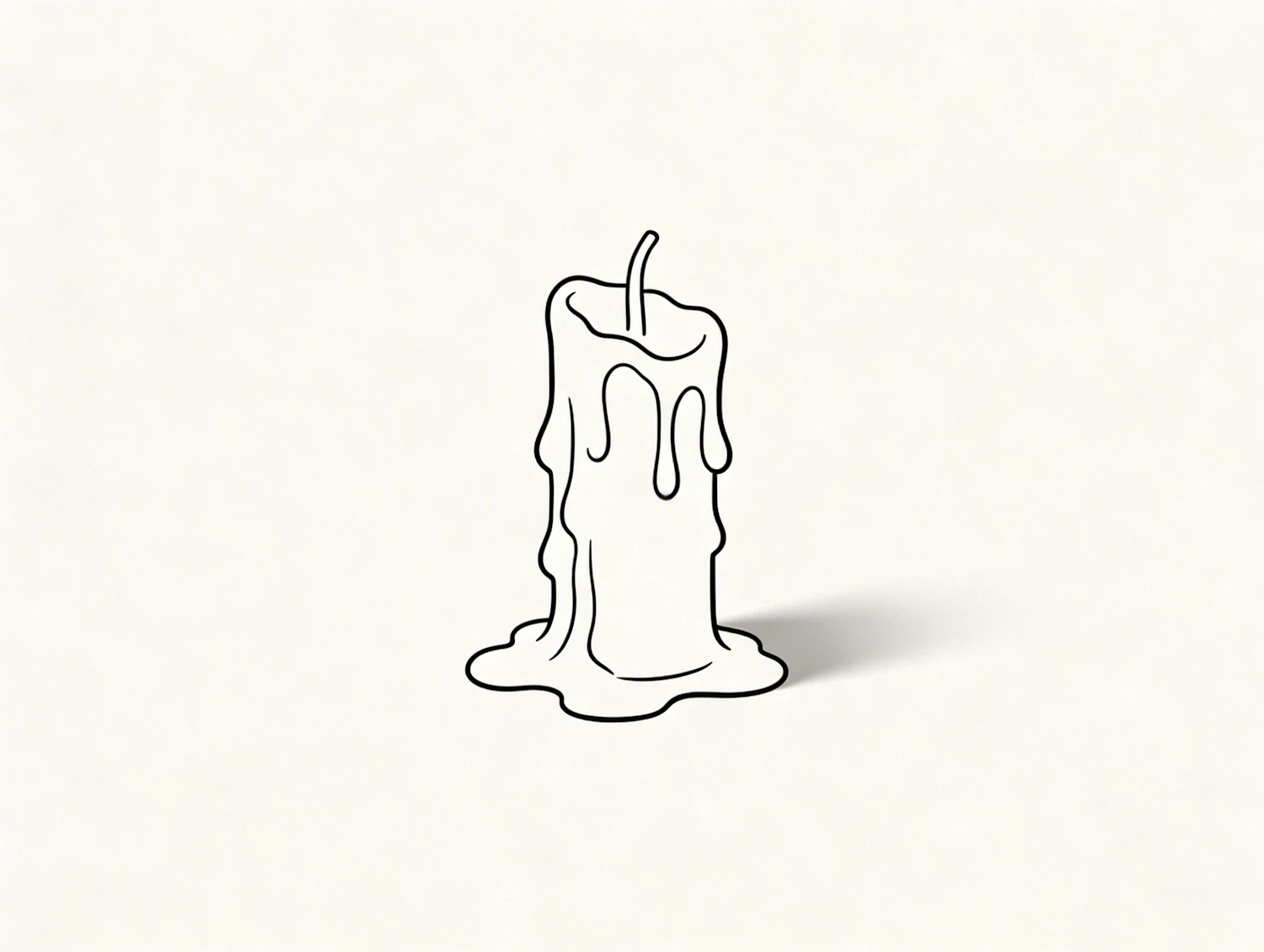 Minimalist line art of a melting candle with a visible wick, featuring smooth wax drips and a clean, simple design.