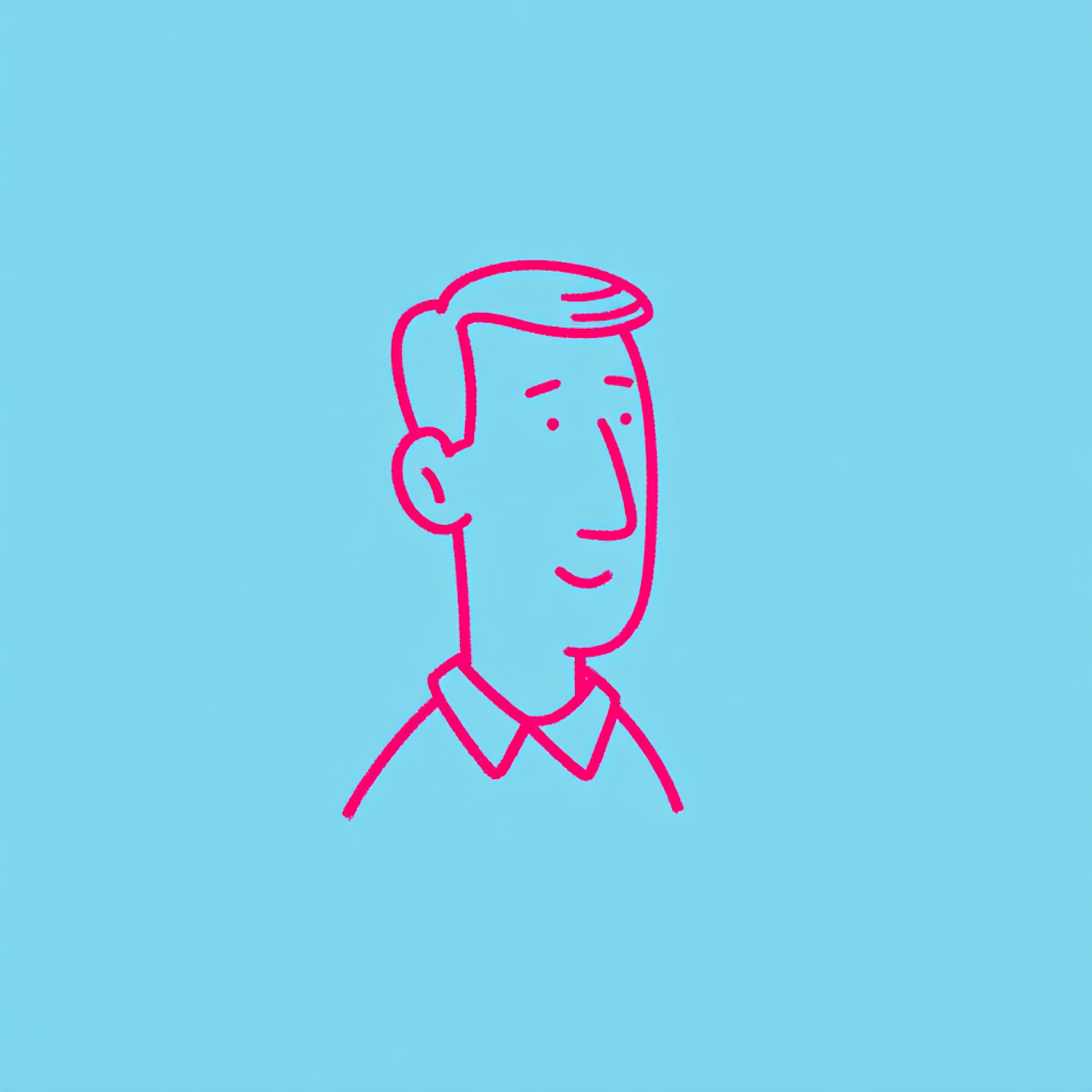 Minimalist cartoon illustration of a man in pink lines on a blue background, featuring a collared shirt and a simple, clean design.