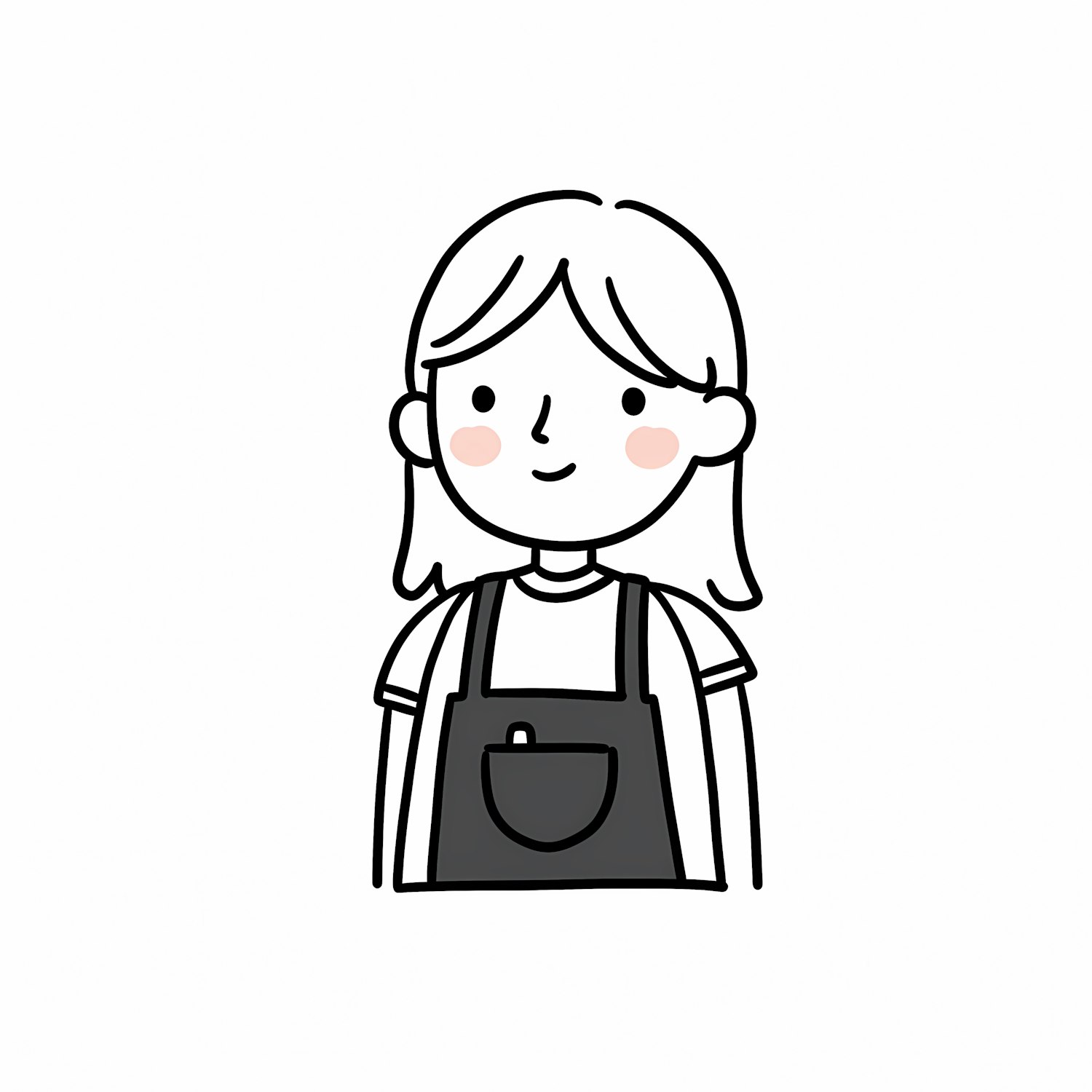 Minimalistic illustration of a smiling person in an apron, drawn with clean lines and a monochromatic style.