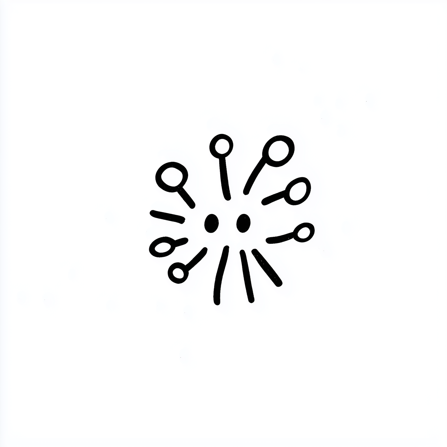Minimalist black-and-white illustration of a dandelion-like burst with radiating lines and circles, perfect for modern designs.