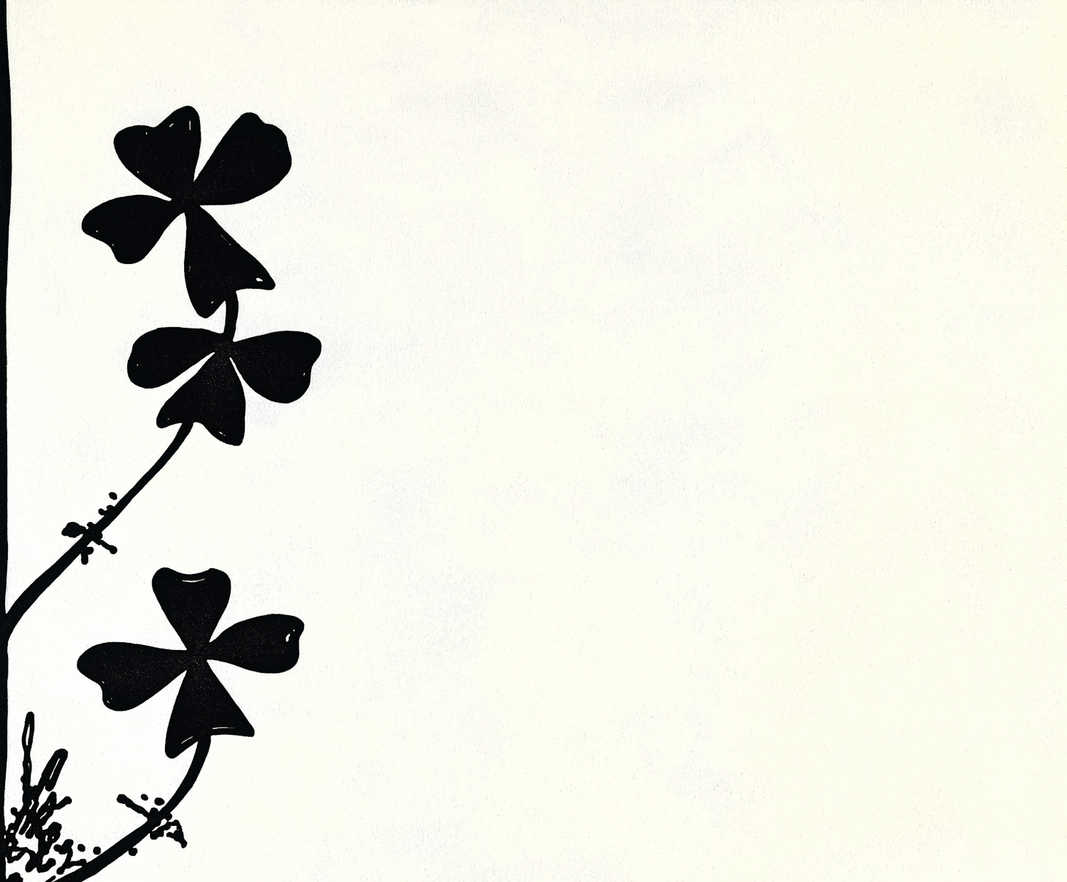 Minimalist black and white illustration of two clover leaves on a plain background, emphasizing simplicity and contrast.