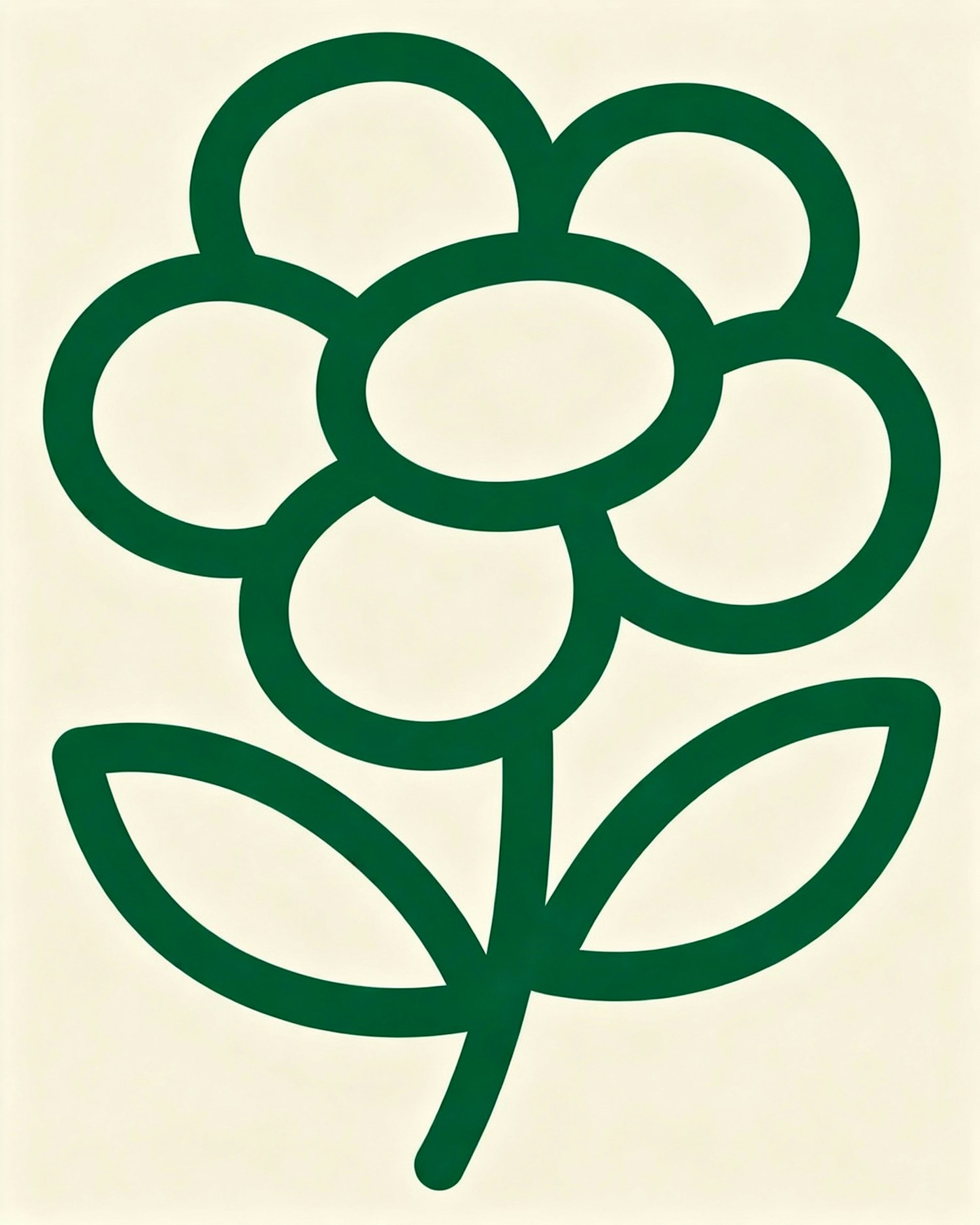 Minimalist green flower illustration with a beige background, featuring a simple outline design with petals and leaves.