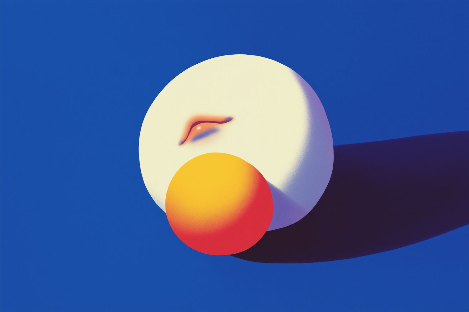 Abstract illustration with a white sphere, orange shape, and vibrant blue background, creating a modern and minimalist design.
